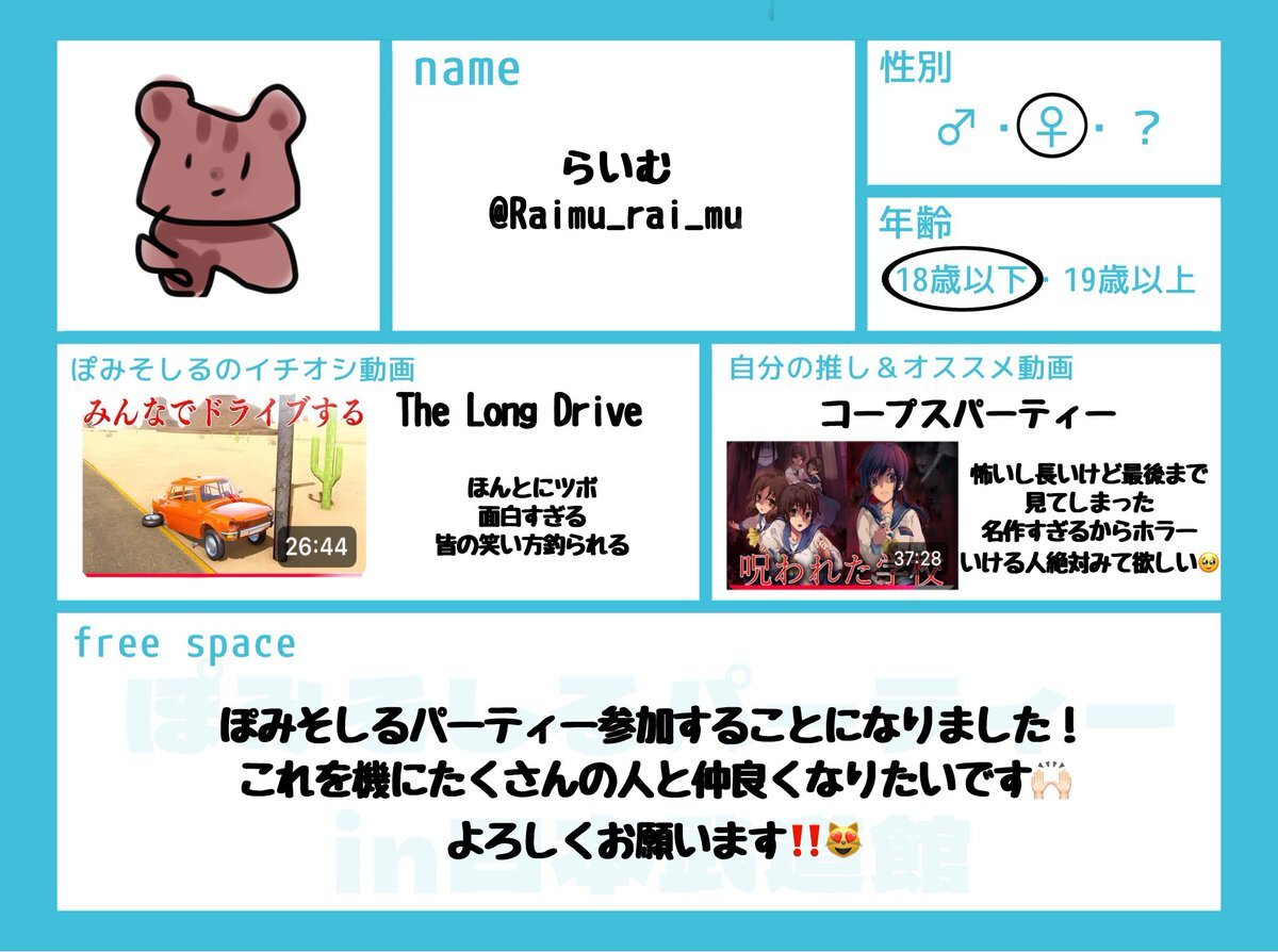 ♡素敵なテンプレートお借りしました♡ 今更ですがぽみぱに向けて作成しました🙌🏻 全反応気になり次第お迎え行きます🍀* ゚ #ぽみそしるパーティー #ぽみそしる好きな人と繋がりたい pic.x.com/w8Np1M1CL4