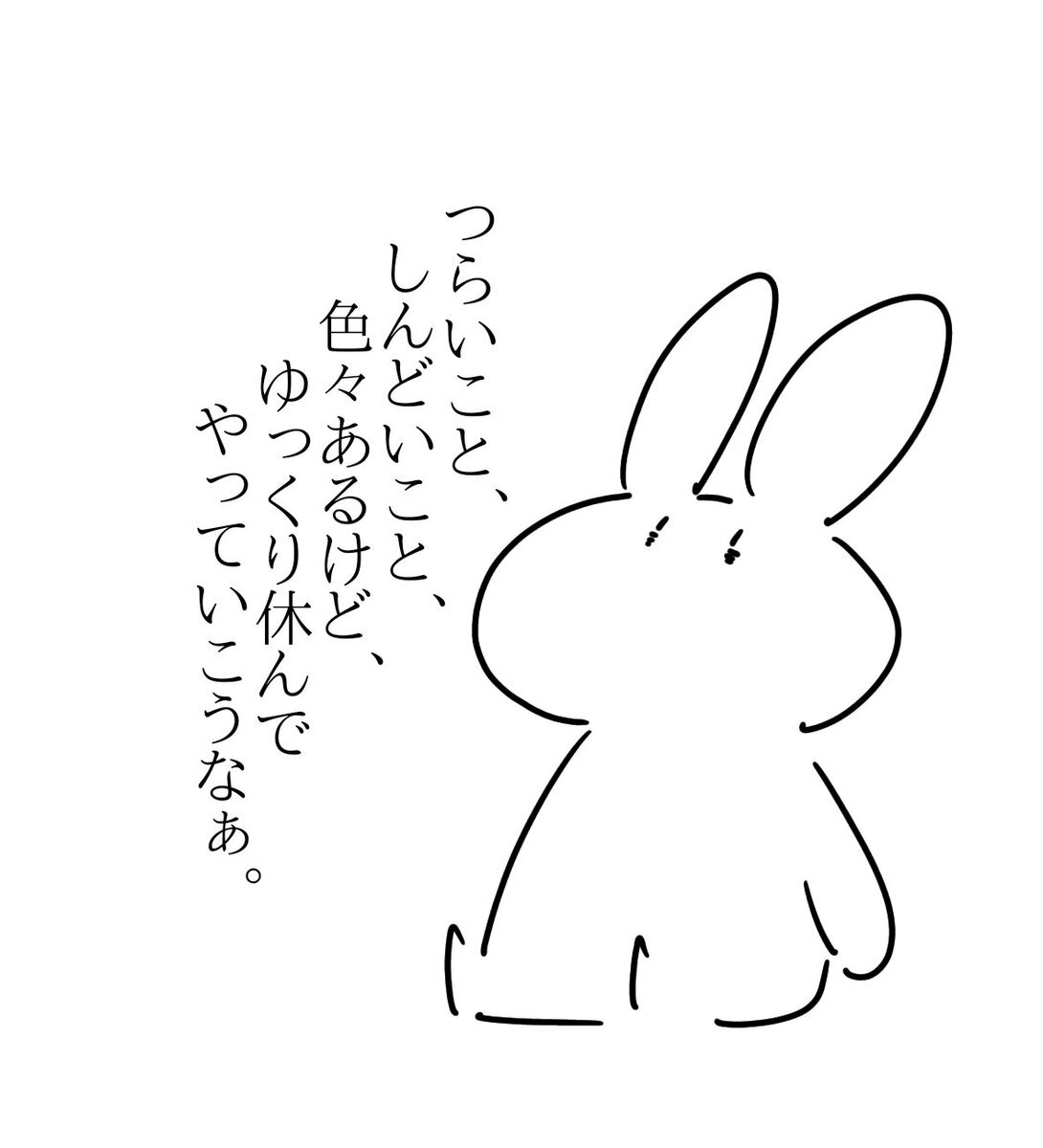 🐰きょうのまいぼっち🐰 つらいこと、しんどいこと、 いろいろあるけど、 ゆっくりやすんでやっていこうなぁ。 #まいぼっちうさぎ #イラスト日記 #287日目 #日曜日 pic.x.com/nhUigCfcNm