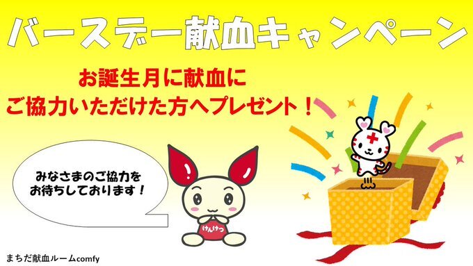 まちだ献血ルームではバースデー献血キャンペーンを行っております🎂 10月生まれの方、ぜひ献血にご協力ください! お待ちしております! #献血 #まちだ献血ルーム pic.x.com/oB9j84Nju6