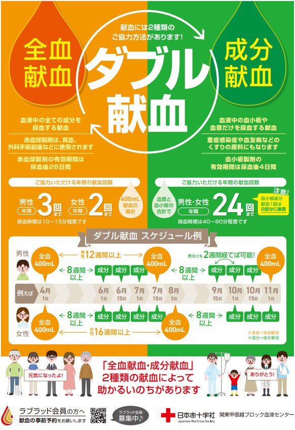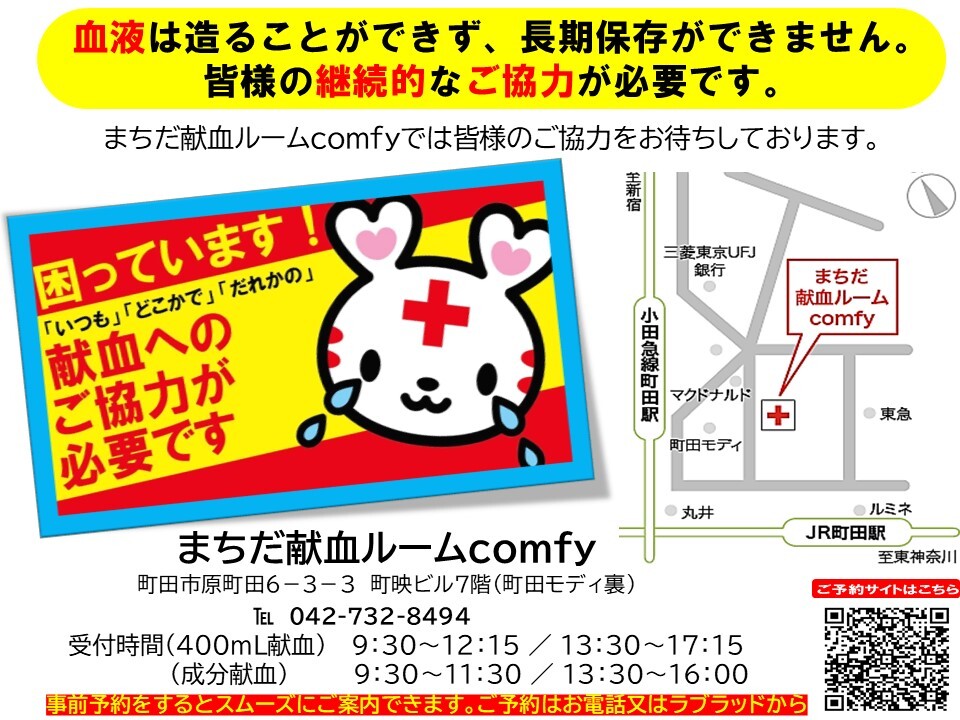 おはようございます! 本日の予約状況です。 全血献血・成分献血どちらも予約枠に空きがございます💦3時間前まででしたら #ラブラッド から予約がとれます!お電話でも承ります📞042-732-8494 みなさまのご協力をお待ちしております🙇🙇♀️ #献血 #まちだ献血ルーム pic.x.com/JNRuQ7A0d9