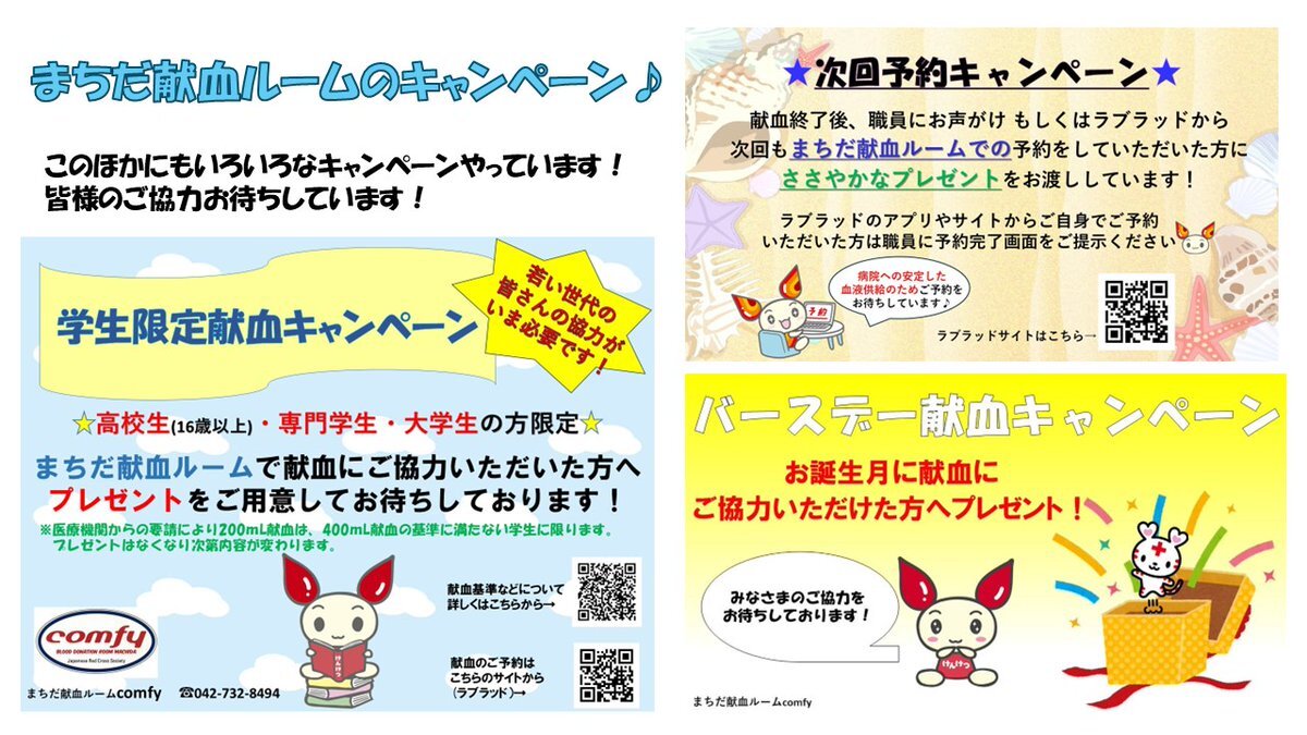 / コミックマーケット献血応援イベント開催 \ 9/30までです‼️ 400mL献血にご協力の方で、 ご希望の方に限定コラボグッズをプレゼント!(記念品なくなり次第終了) #まちだ献血ルーム では記念品残り少なくなっております💦 この機会にぜひ #献血 のご協力をお願いします! pic.x.com/jwYCVlgJJH