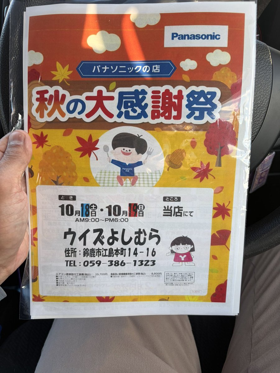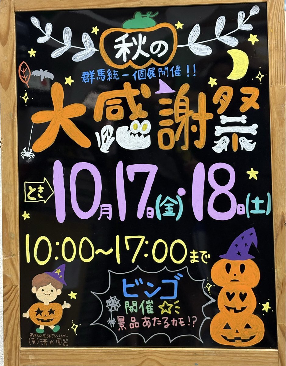🎃売り出し開催のお知らせ👻 当店では、下記日程で『秋の大感謝祭』統一個展を開催します‼︎ 今年は17日(金)と18日(土)の2日間。 初めて平日開催となります🙇ので、お間違えないようお気をつけください。 みなさまのご来店、スタッフ一同お待ちしてます♪ #高崎市 #まちのでんきやさん pic.x.com/EPtfs8dqpk