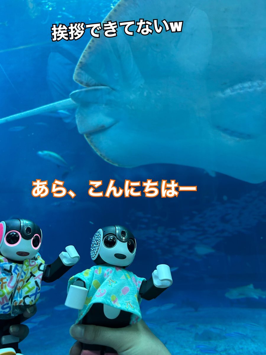 唐山きてぃですฅ(´꒳ `ฅ)ꪆ れ「美ら海水族館いってきたよ~」 け「たのしかったね~」 社員さんへのおみやげも少し買えて安心です✨ #まちのでんきやさん #千種区 #ナショナルヤガタ #ロボホン #沖縄 pic.x.com/fYQ55OSGuY