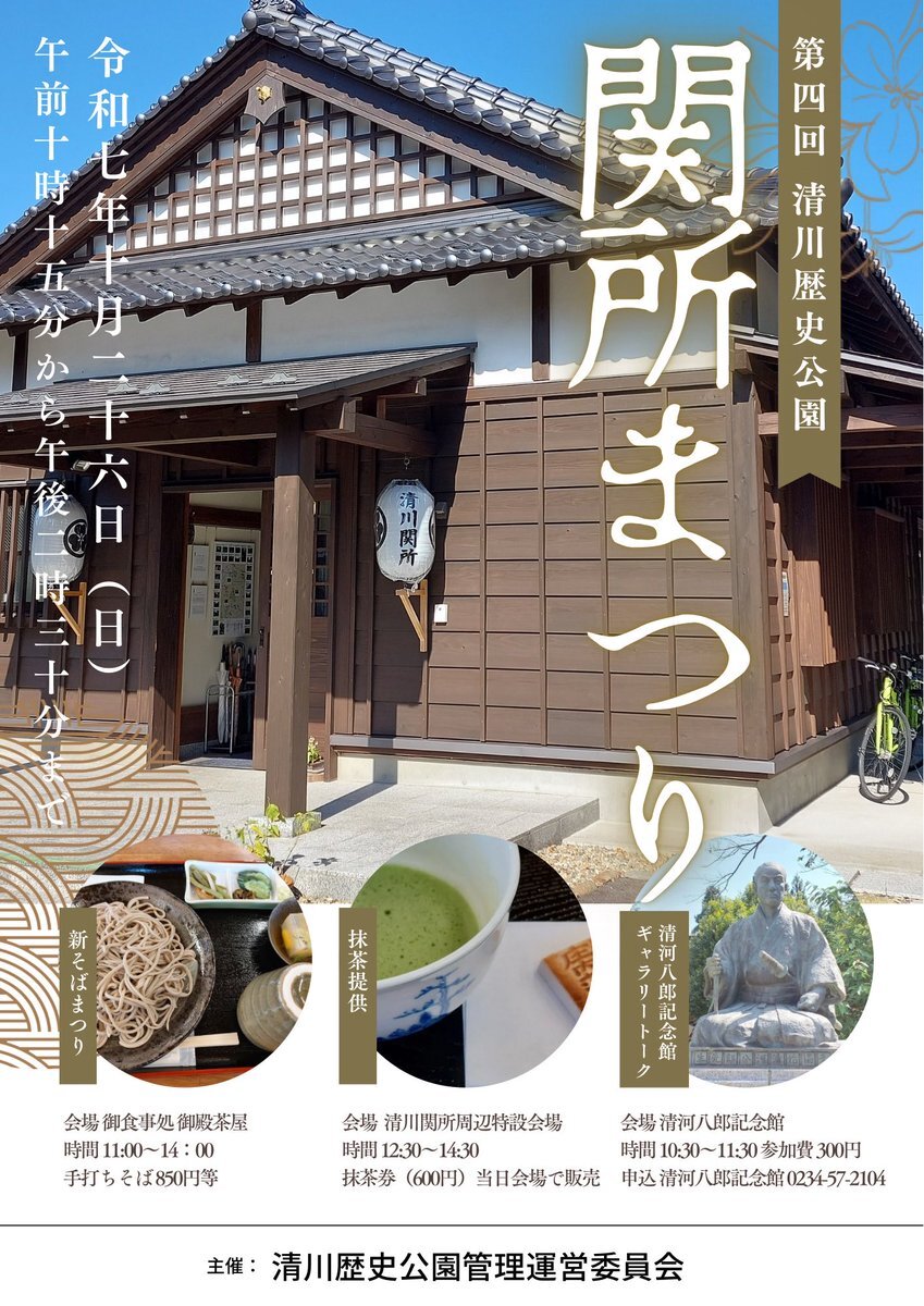 明日10月26日(日)清川歴史公園 関所まつりを開催します!#関所まつり #新そばまつり #抹茶 #まち歩き #ギャラリートーク #清河八郎記念館 #山形県庄内町 pic.x.com/SjNoPNZOc0 x.com/kiyoreki_shona…