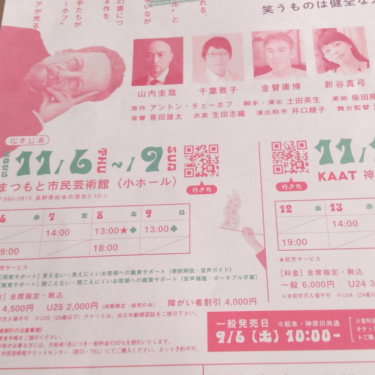 【#山内圭哉】 舞台『#チェーホフを待ちながら』 本日、松本公演千穐楽です📣 11月9日(日)13:00開演 皆さまのご来場を心よりお待ちしております✨️ #チェーホフを待ちながら #まつもと市民芸術館 x.com/mpac_jp/status…