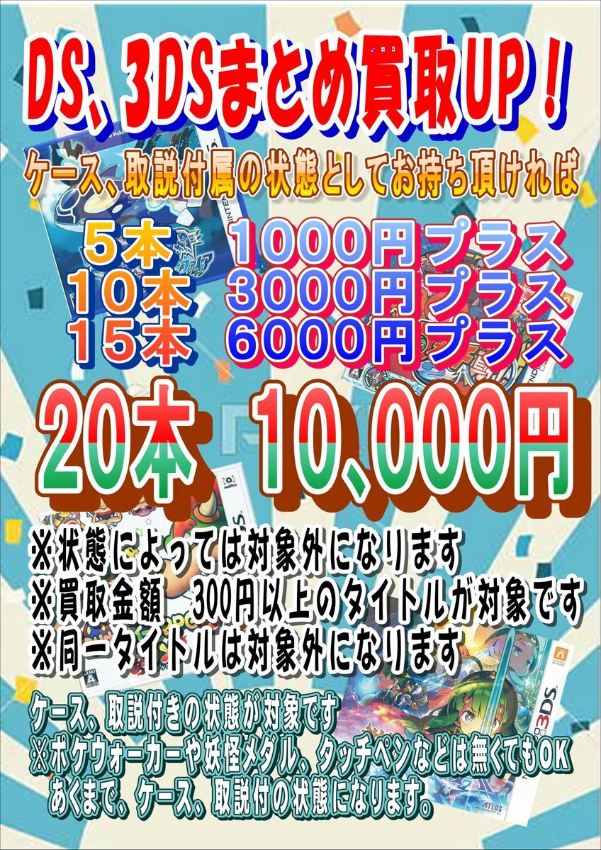 【まとめ買取情報】 DS、3DSまとめ買取を実施中! ケース、取説付の状態であれば持ってくる本数に応じて買取査定がアップしちゃいます! 詳しくは店頭にてご確認ください 10/30更新 内容が一部変更になりました。 #買取 #DS #3DS #レトロゲーム #まとめ買取 #千葉鑑定団 #東金店 pic.x.com/mi2mN6CLjY