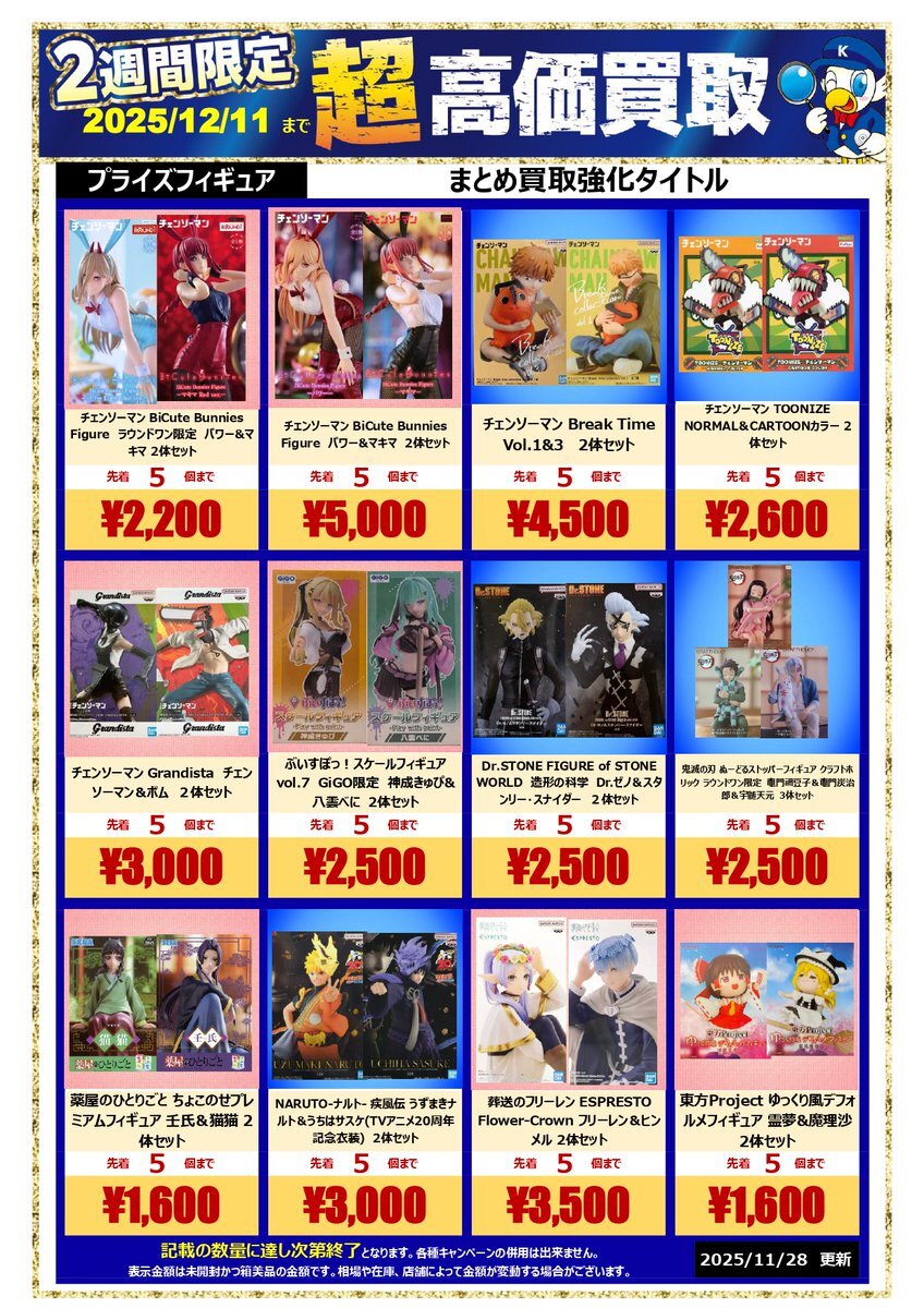 #水戸市ワングー #WonderGOO水戸笠原店 #プライズフィギア #まとめ買取 期間数量限定プライズフィギアまとめ買取情報です。  ご来店お待ちしております😃 x.com/wgoo_used/stat…