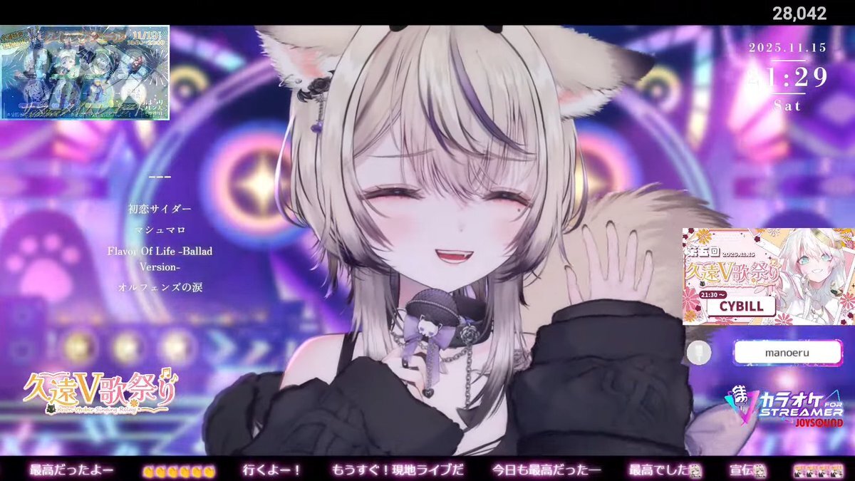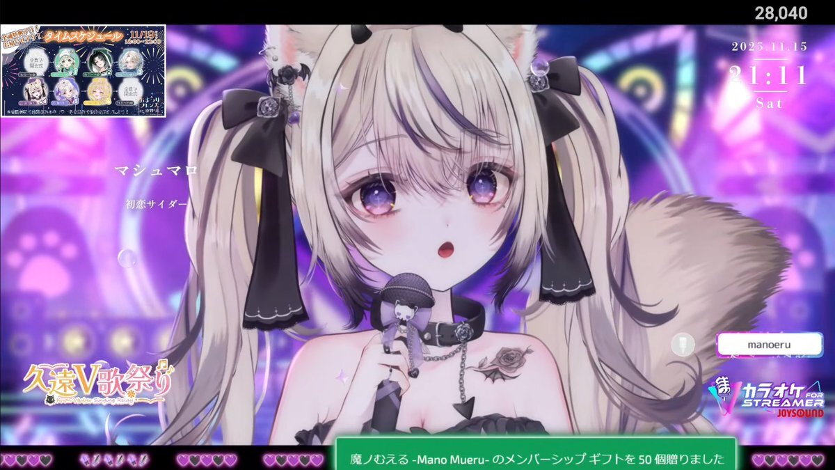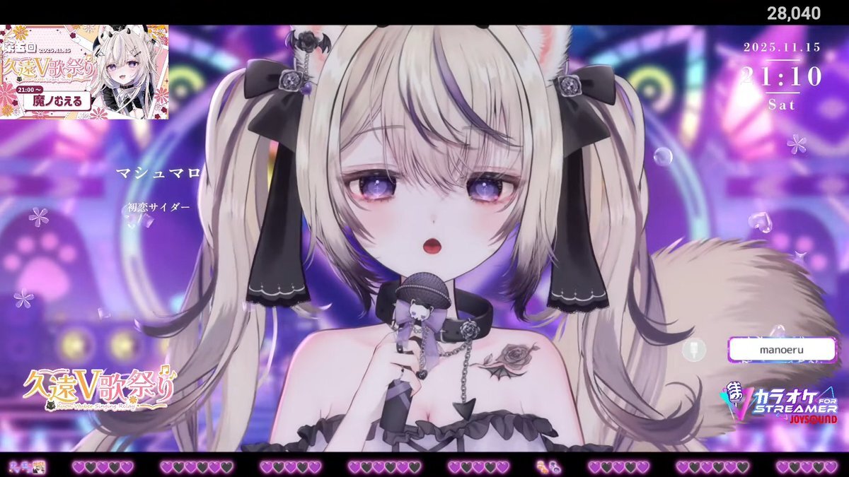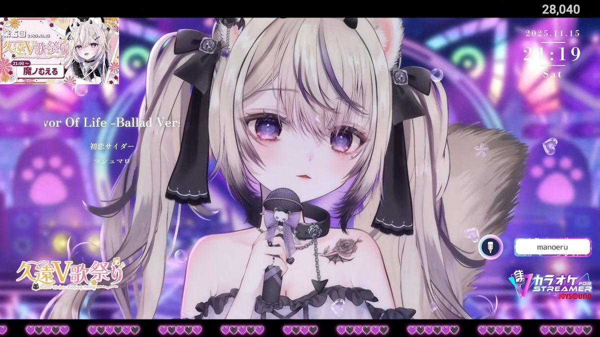 #第5回久遠V歌祭り〗全力で盛り上がっていきましょう💜#まのちらいぶ#vsinger#魔ノむえる 〗 弾幕はこちら!!¦💜🖤💜🖤💜 youtube.com/live/sM03oaW6y…