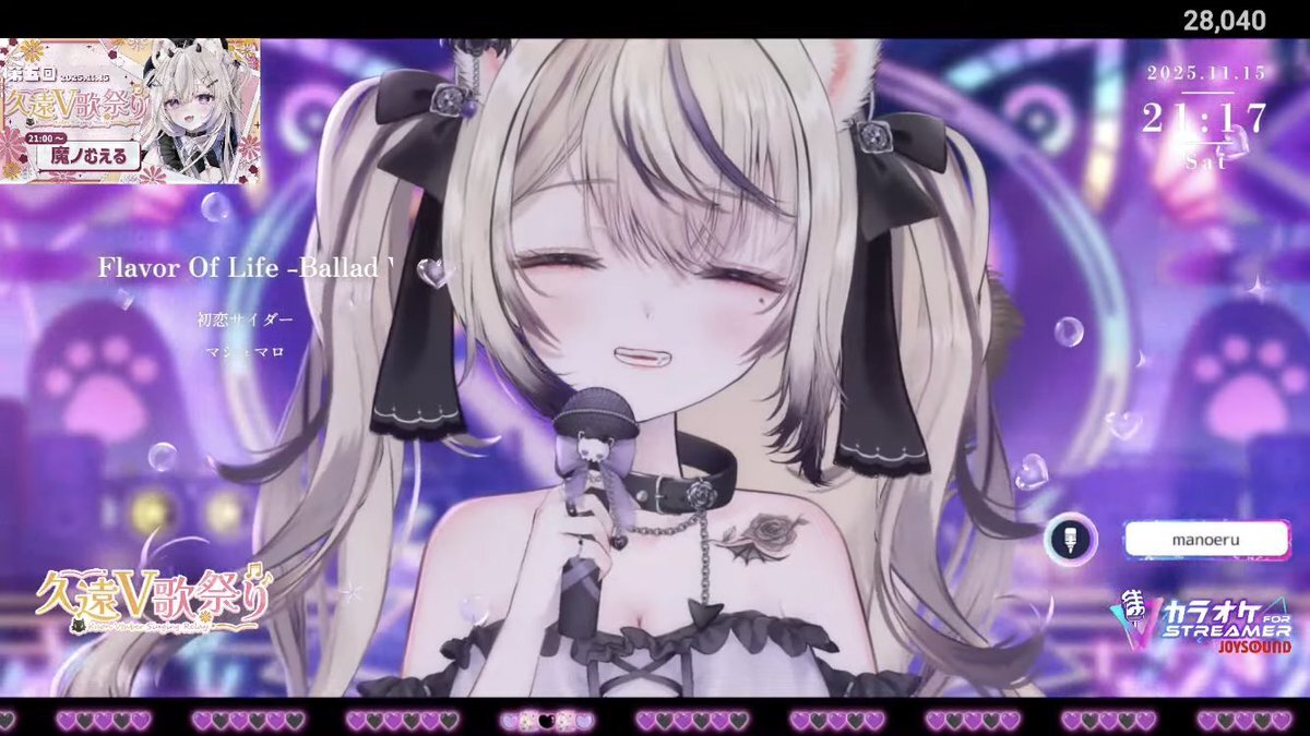 #第5回久遠V歌祭り〗全力で盛り上がっていきましょう💜#まのちらいぶ#vsinger#魔ノむえるyoutube.com/live/sM03oaW6y… @YouTubeより 課題曲 flavor of Love/宇多田ヒカル pic.x.com/sdCPqhrkDh