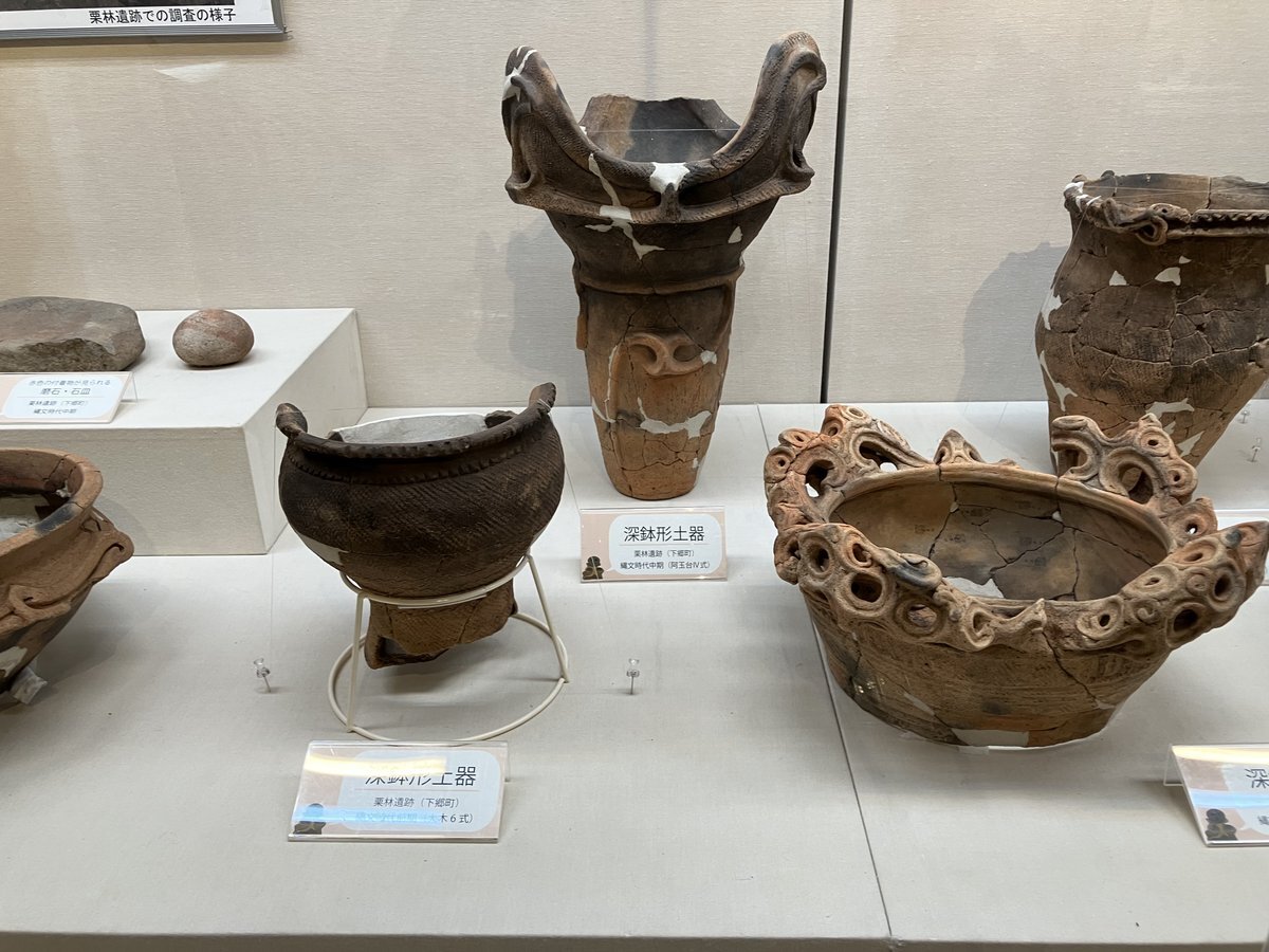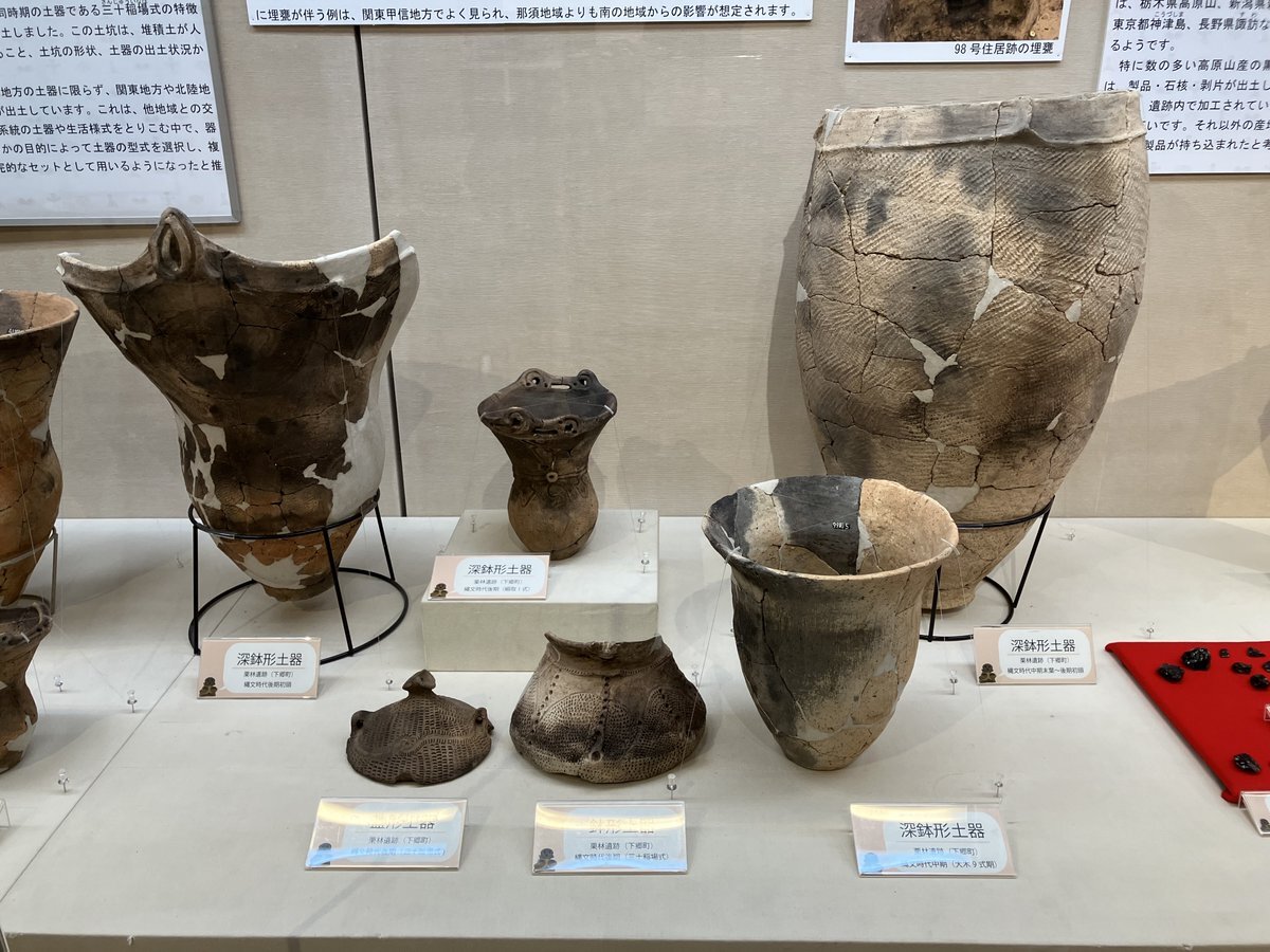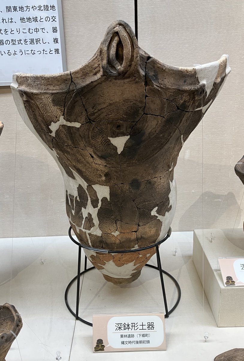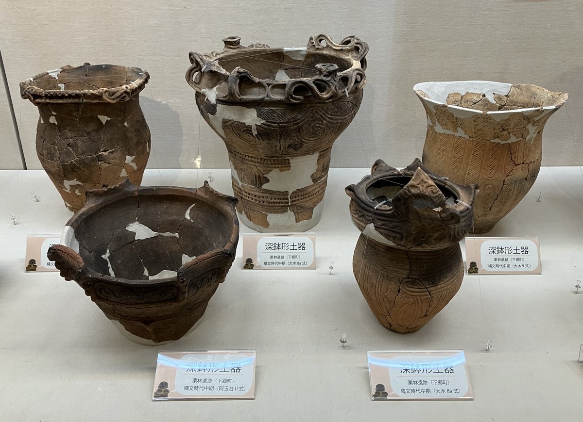南会津郡下郷町の栗林遺跡からは沢山の新蔵資料の展示が。先ずは中期の縄文土器たち。大木式(8a~9)と阿玉台式が混ざります。 #まほろんのニューフェイスたち #まほろん pic.x.com/ANdCs5QmLD