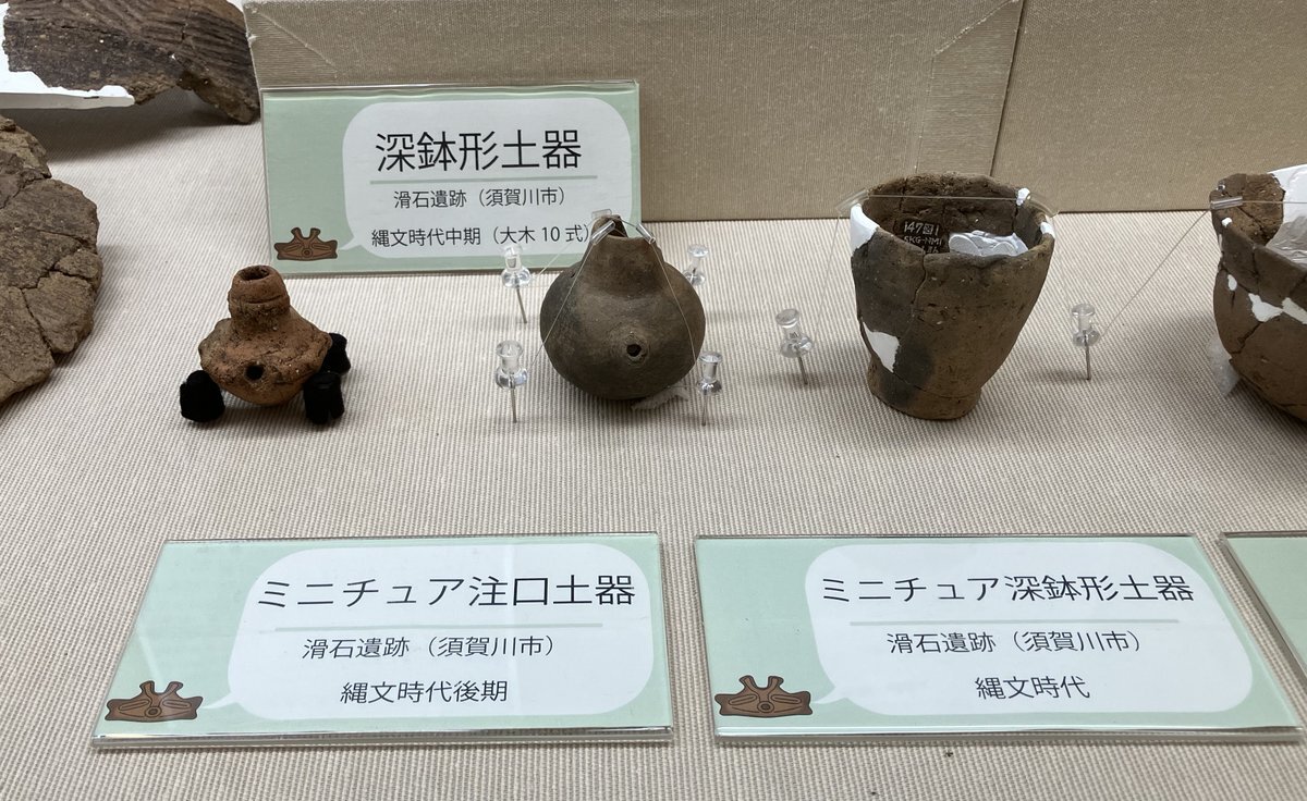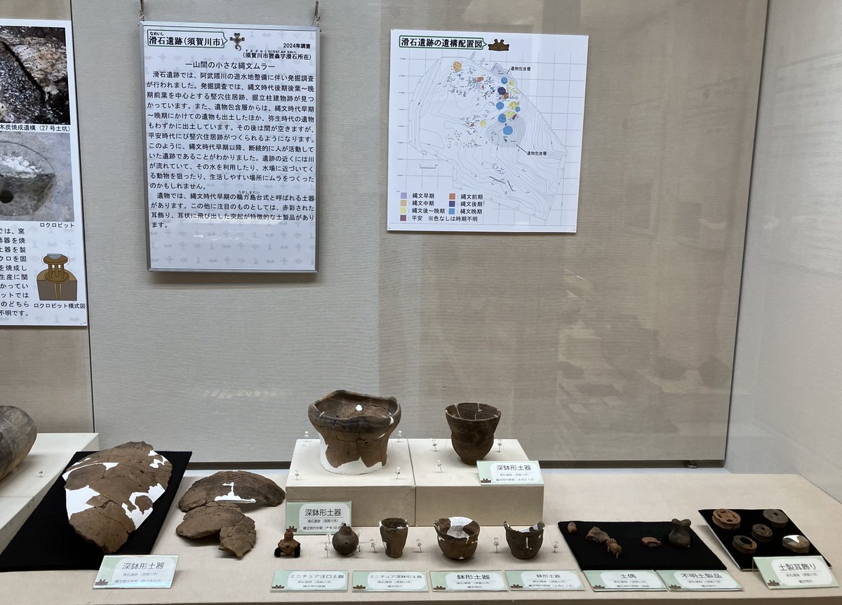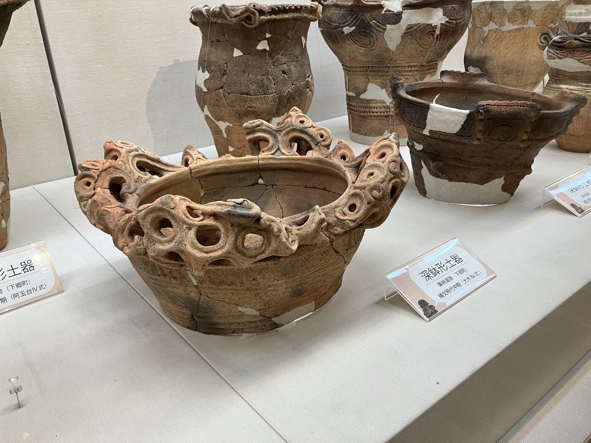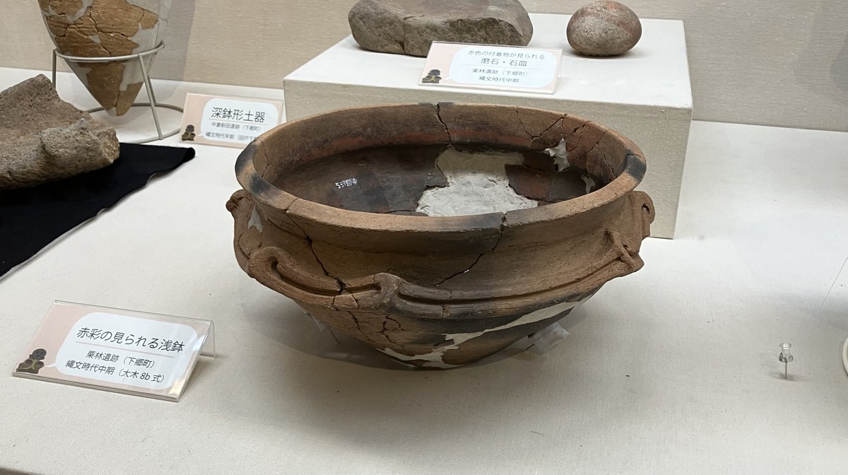 南会津郡下郷町の栗林遺跡からは沢山の新蔵資料の展示が。先ずは中期の縄文土器たち。大木式(8a~9)と阿玉台式が混ざります。 #まほろんのニューフェイスたち #まほろん pic.x.com/ANdCs5QmLD