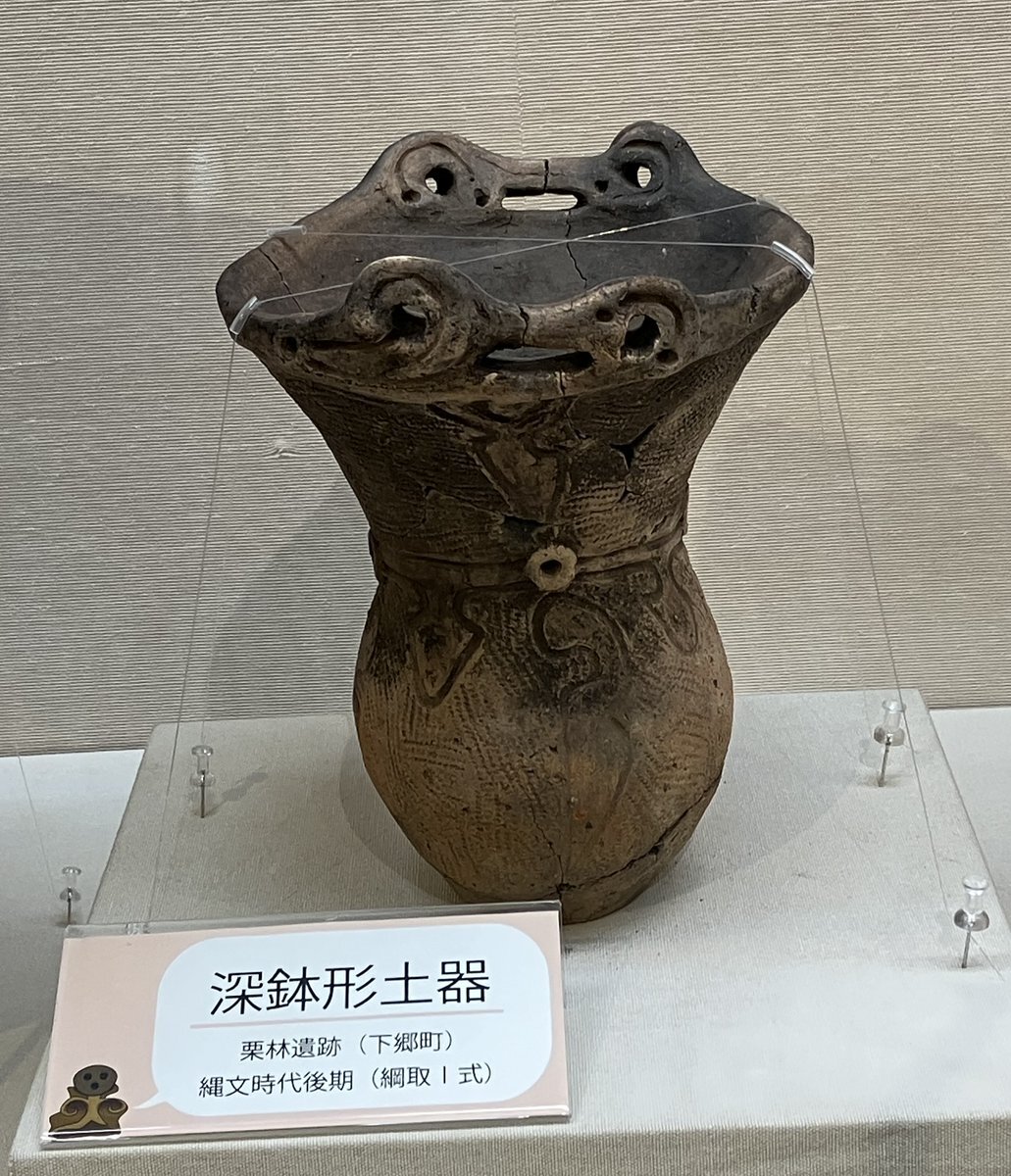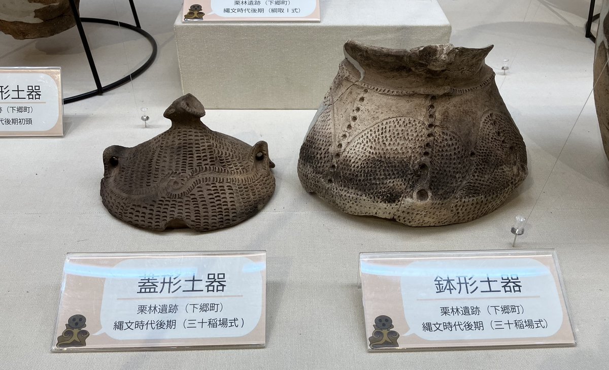 同じく下郷町の栗林遺跡からの縄文後期の土器たち。 2⃣の綱取I式は何とも可愛いいカエル顔。 4⃣の三十稲場式も中々の優品(特に蓋)。 #まほろんのニューフェイスたち #まほろん pic.x.com/u96QjvEwF5