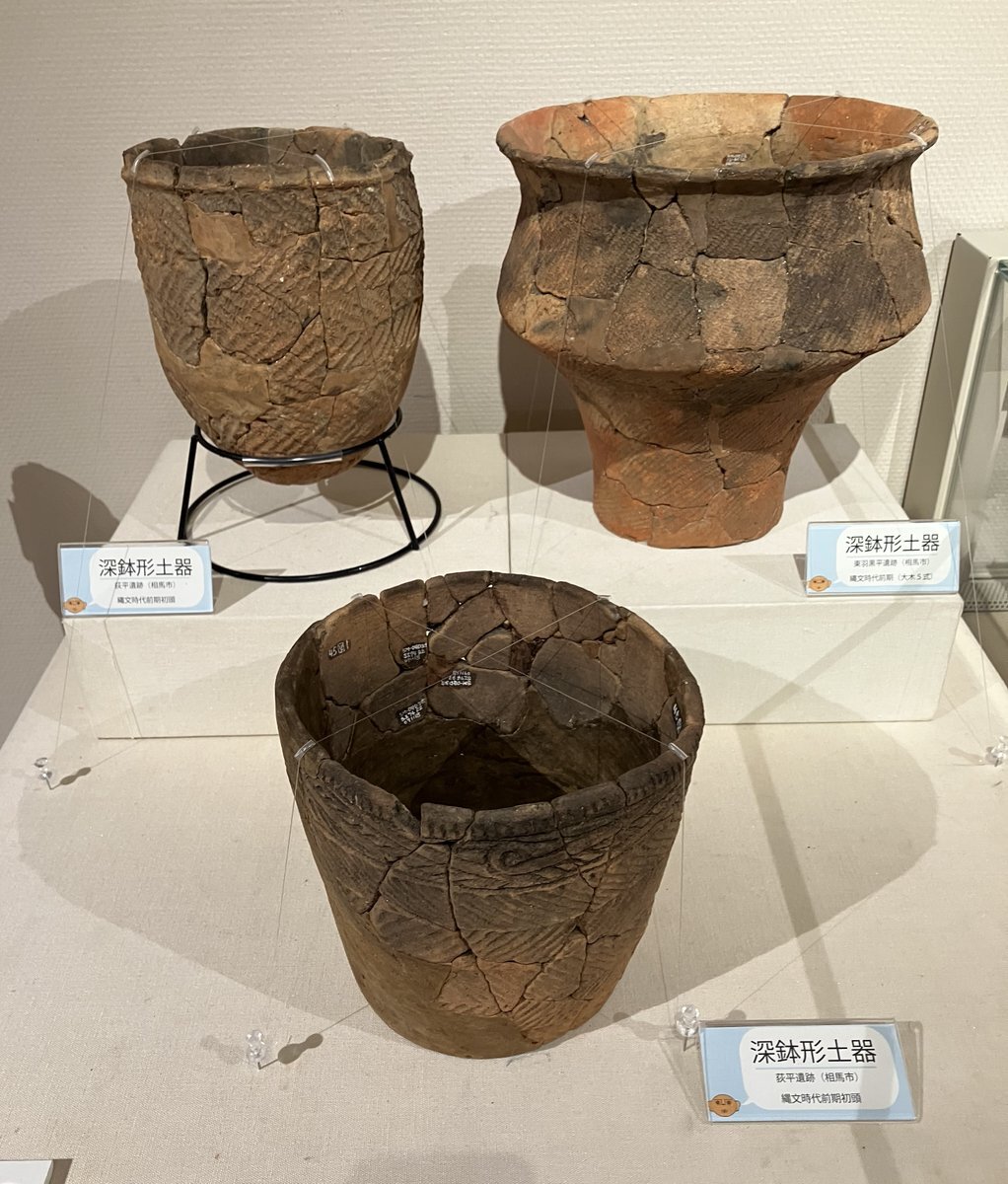 ラストは相馬市の荻平遺跡。縄文早期から弥生中期まで継続した遺跡のようです。 1⃣の大木5式は他ではあまり見たことのない面白い形。 #まほろんのニューフェイスたち #まほろん pic.x.com/UX2lCLO3F3