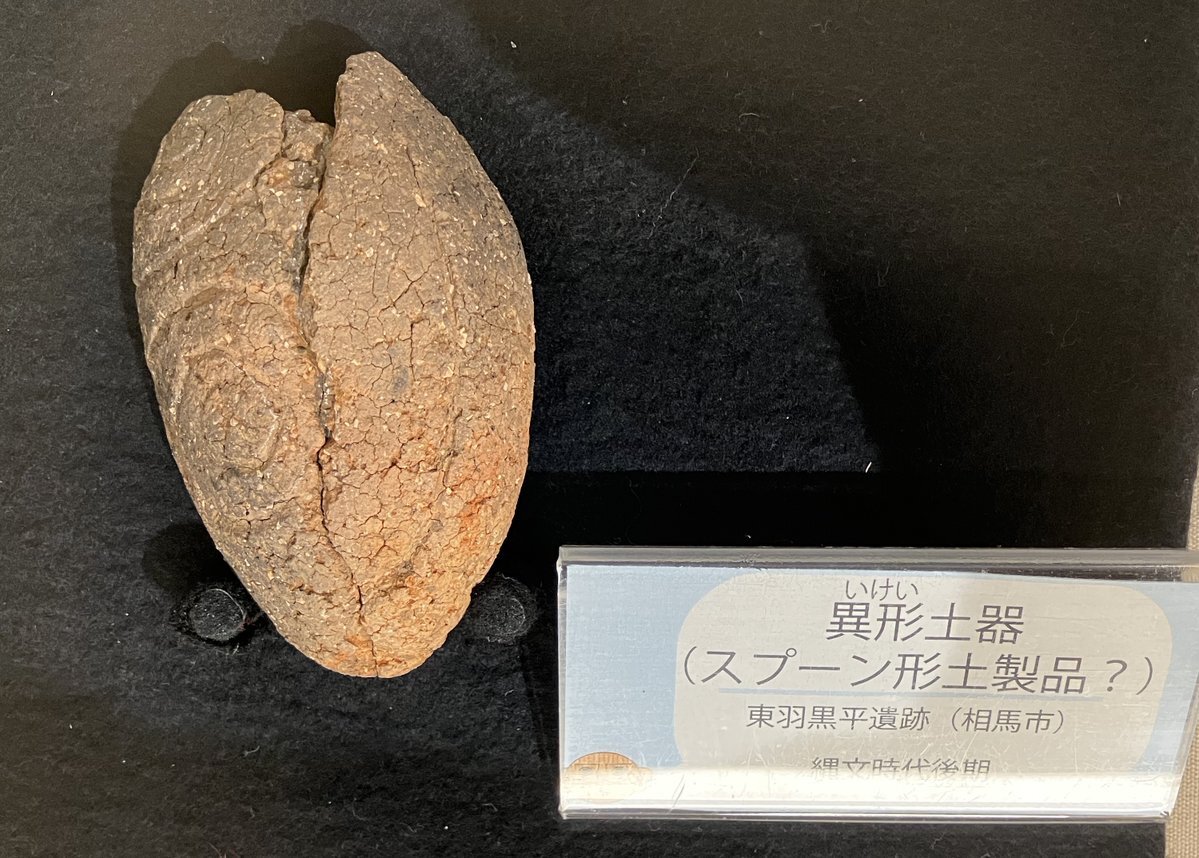 相馬市の羽黒平遺跡からは大型ハート形土偶の頭部の一部が出土(2⃣)。 3⃣の土製品は「スプーン形土製品?」とキャプションが付いていますが、それが当たっていれば沈線紋様入りのレア品かも。 #まほろんのニューフェイスたち #まほろん pic.x.com/UTXU56B39p