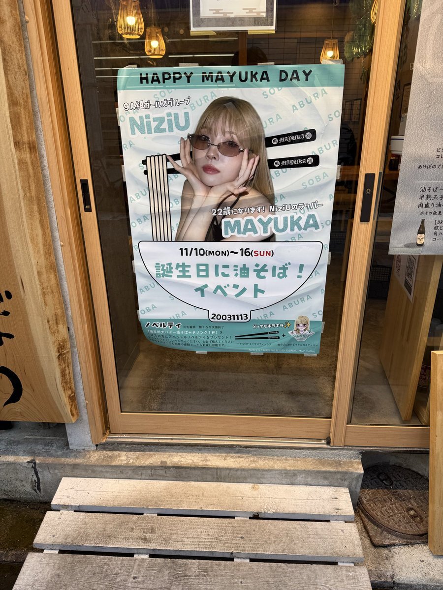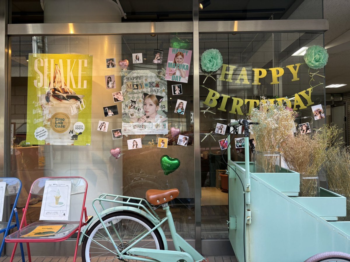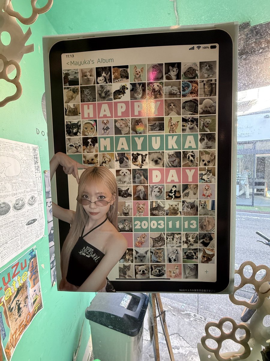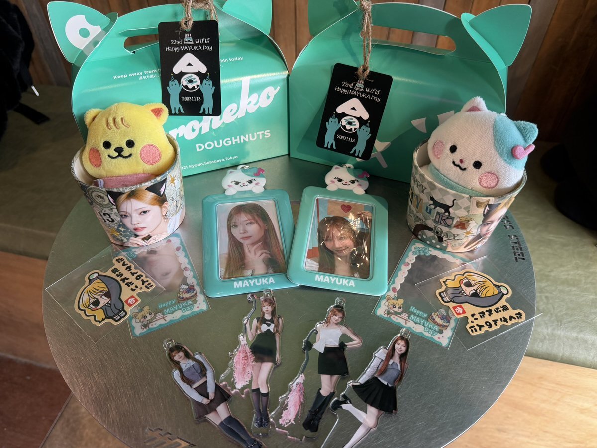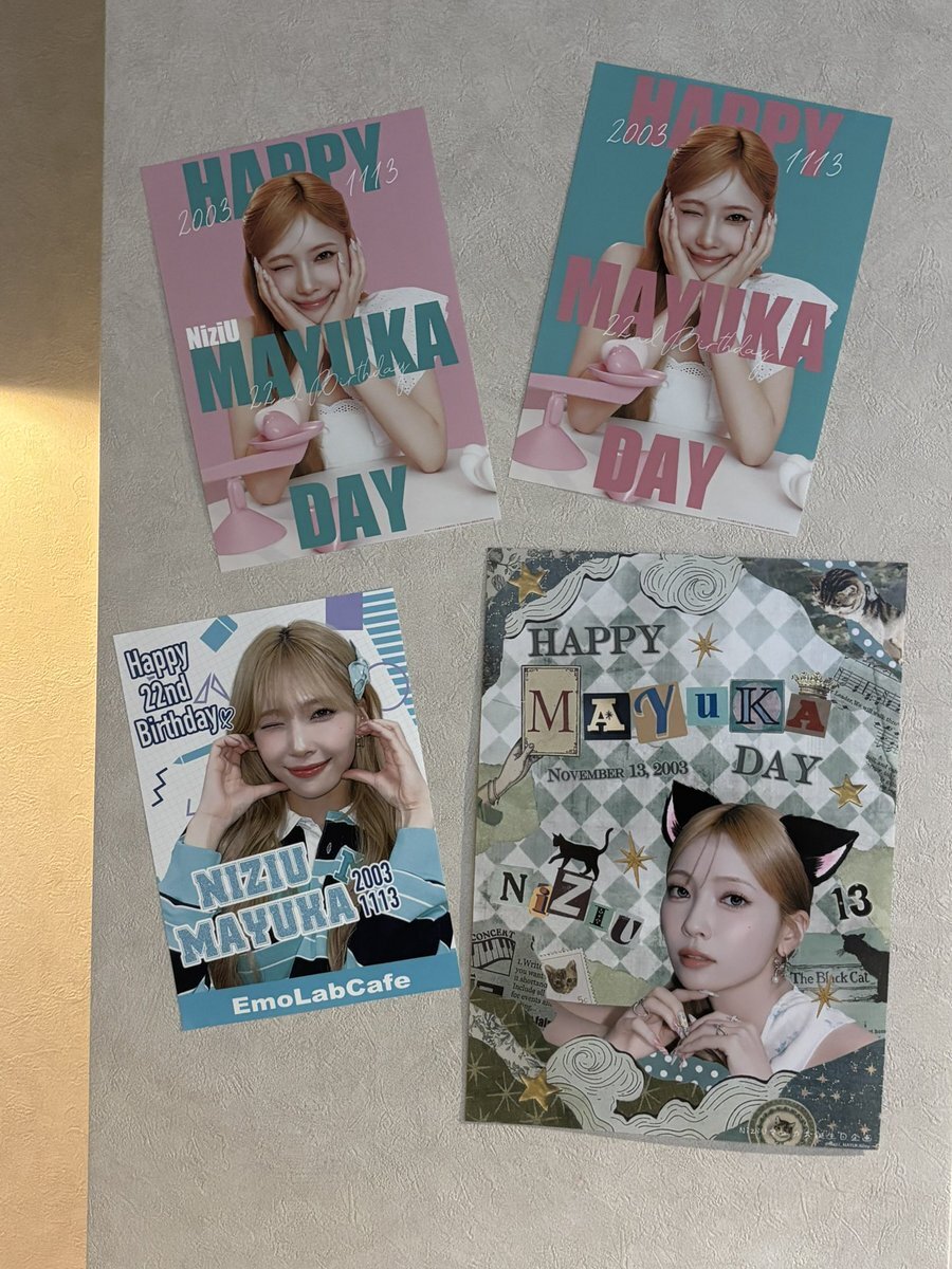 マユカセンイルウィークまだまだ続いております‼️全国各地のカフェや広告をお楽しみください🐱💚 一部特典終了してしまったイベントもございますが、引き続き装飾等マユカちゃんで溢れた店内になっていますので足を運んでみてください🐾 #HappyMAYUKADay #まゆちのハート掴めばWinner x.com/niziu_mayukada…