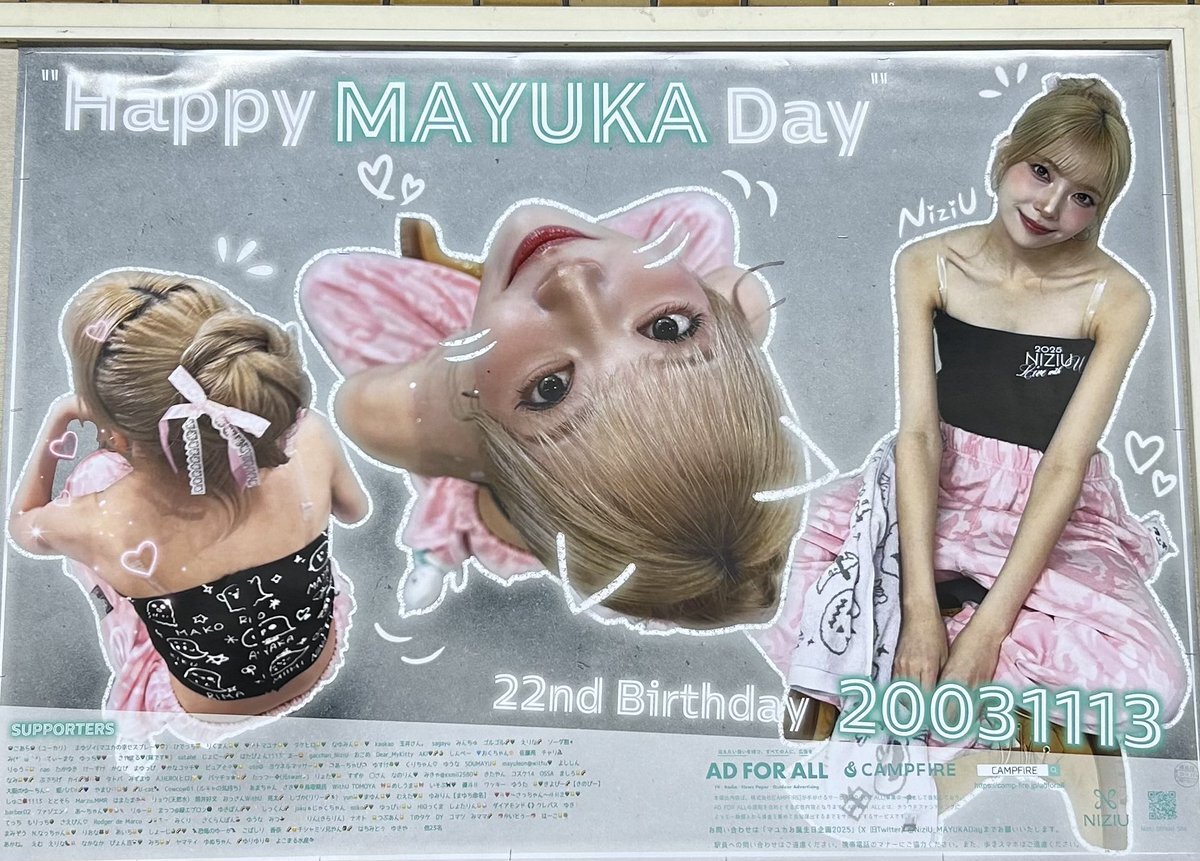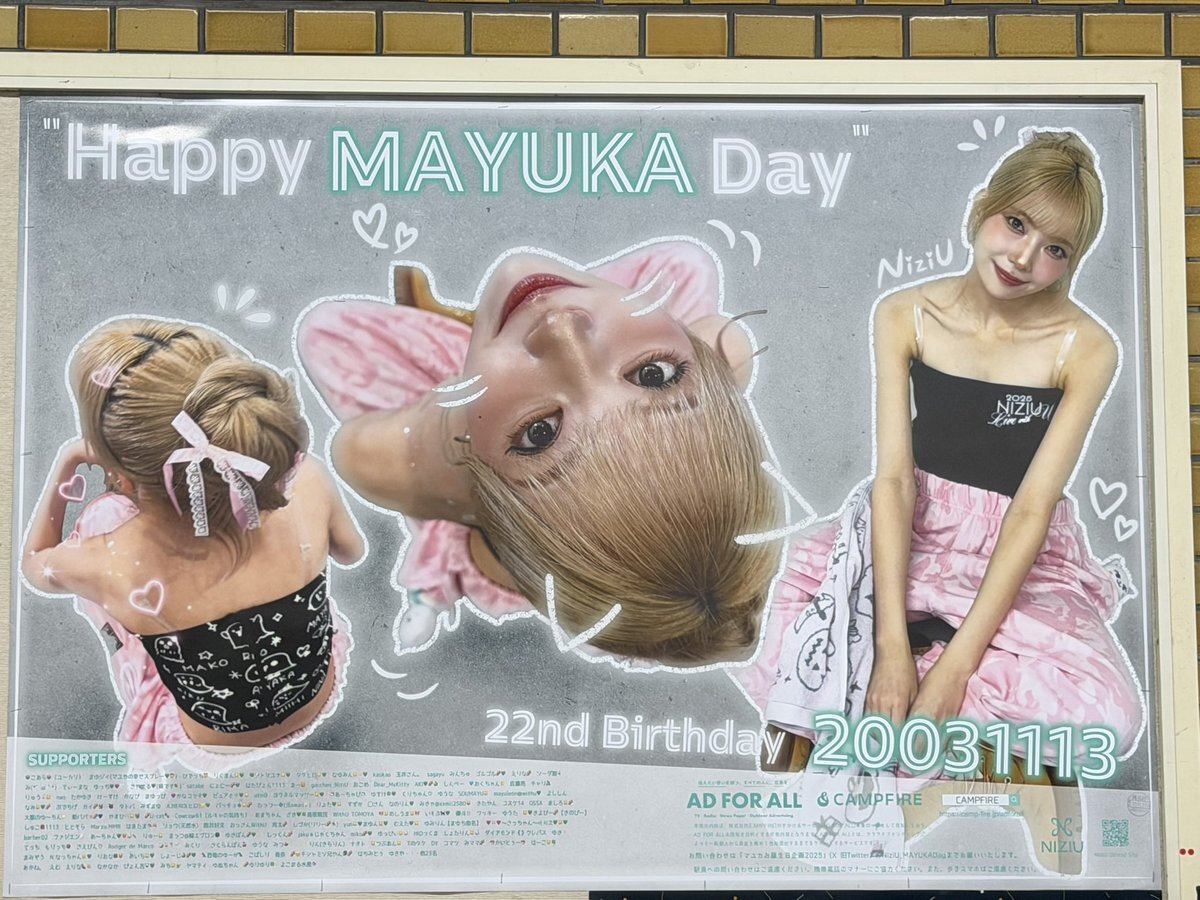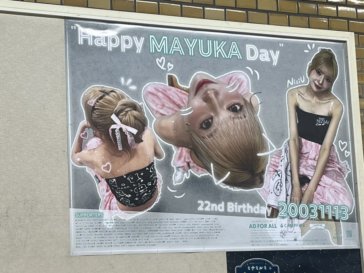 いつか来てくれるんだろうなぁって思っていたけどやっぱり今日だったぁぁぁぁあ!!! またまゆちのセンイル広告を見に行くためにもう一度行く?(日程が厳しい😥😥) 忙しい中、WithUのためにありがとう😭😭 ファン想いのNiziUが大好き〜!!!
