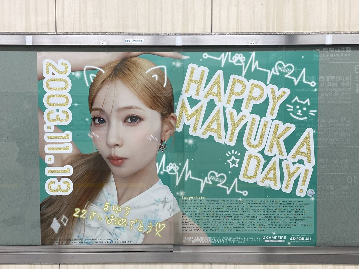 マユちゃーん!何度だって言うよ22歳おめでとう!🐱💚大阪駅の広告見てきた!安定に可愛すぎて存在感凄かったよ😘 #HappyMAYUKADay #まゆちのハート掴めばWinner pic.x.com/zBbxnJU6eS
