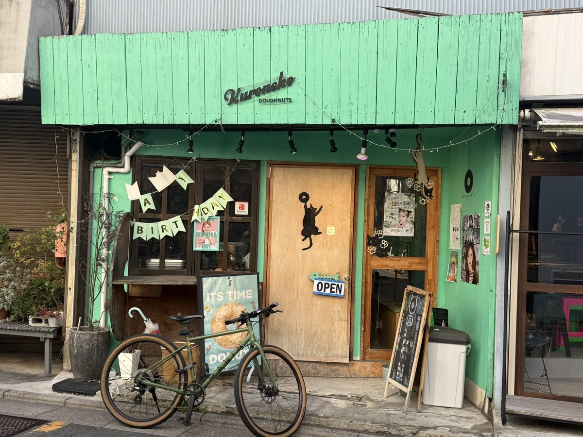 くろねこドーナツさん🍩🐈⬛ セットは間に合わなかったけど完売前に行けて無事に特典もいただけた🥹💚 ドーナツも美味しいし装飾も可愛かった😽 #カフェの中に忍び込めば #HappyMayukaDay #まゆちのハート掴めばWinner pic.x.com/Xqzihjb6i1