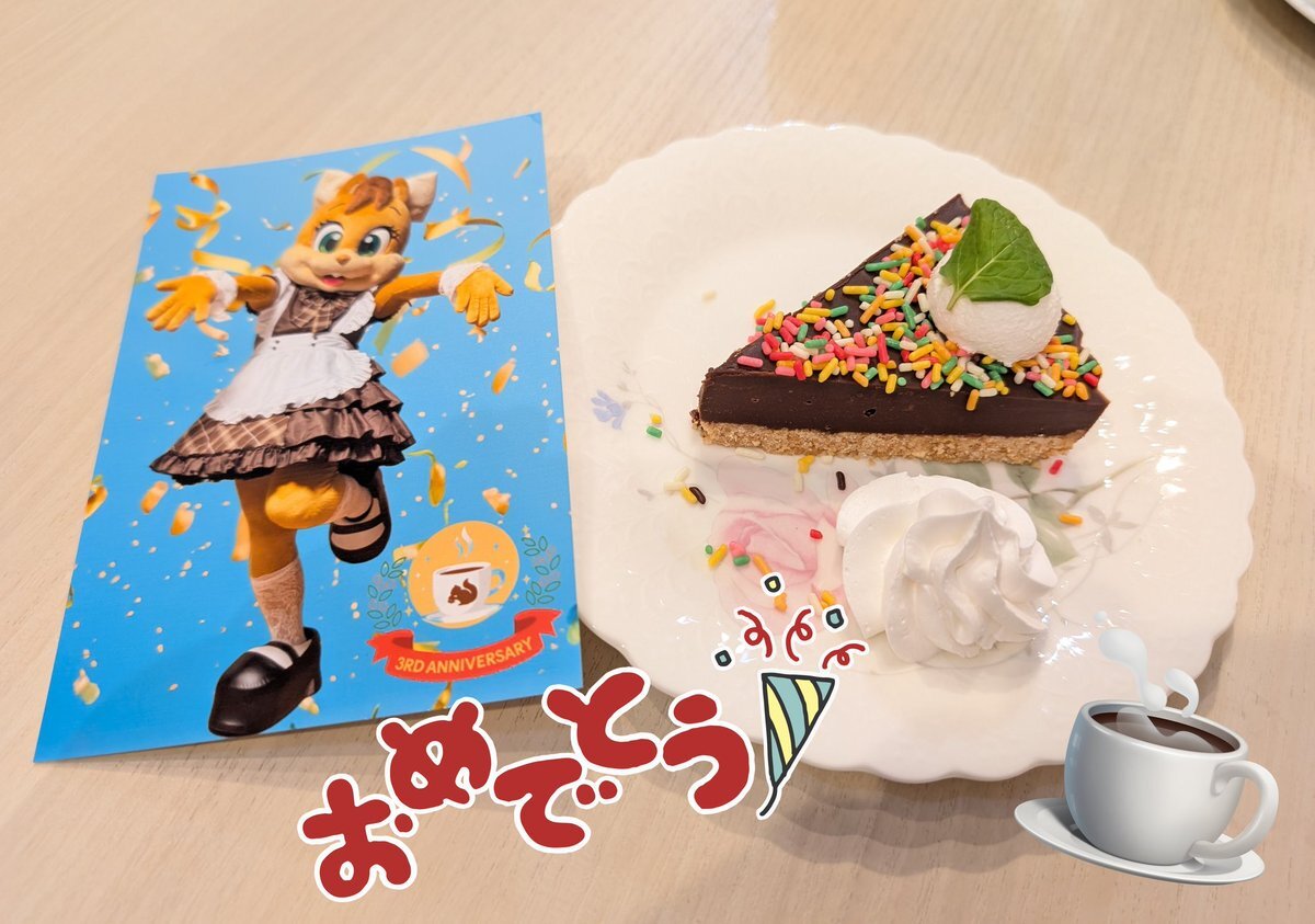 まるうち珈琲3周年おめでとうございました🥳🐿️☕️✨ 美味しい料理と楽しいシャティちゃんとのグリーティングが楽しめる最高のカフェです☺️🫶 #シャティ #まるうち珈琲 pic.x.com/pLaYUTaMpl