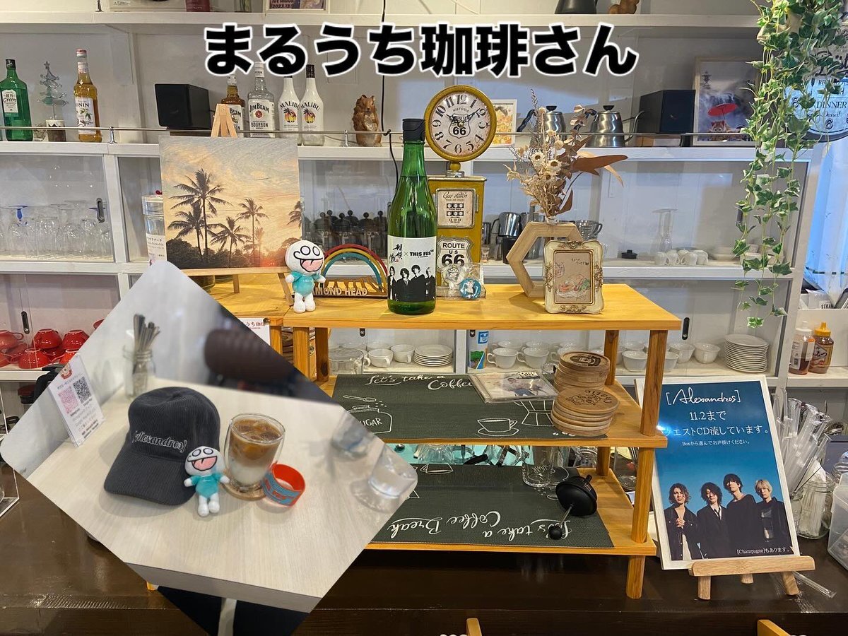 ワクワクしすぎて下見 まるうち珈琲さんでドロスに囲まれて♡準備はOK🎵 #Alexandros #THISFES25 #サウザンロード #まるうち珈琲 pic.x.com/sd5SXfH8bz