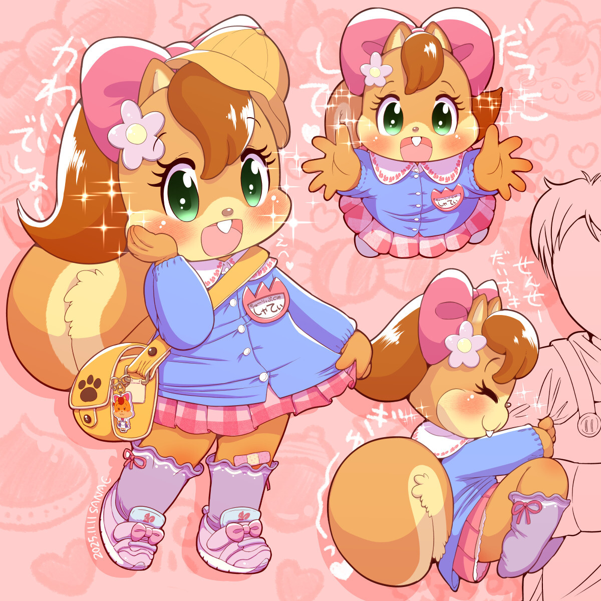 #シャティ #まるうち珈琲 園児シャティちゃん。なんとシャティちゃん本人からのリクエスト! ひとなつこっくてスキンシップだ~い好き。いっぱいだっこしてあげるからね~♡ Chatie, the squirrel girl, in kindergarten uniform. This is request from Chatie herself to me. Let's hug her with pic.x.com/QE6YAfSfyl