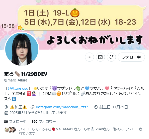#Allure(#アリュール)︎︎ ︎︎☾ 名古屋 大須 #コンセプトバー #まろ 🦦さん @maro_Allure 応援&フォローよろしくお願いします🦦 #コンカフェキャスト pic.x.com/gnCfG19WpT