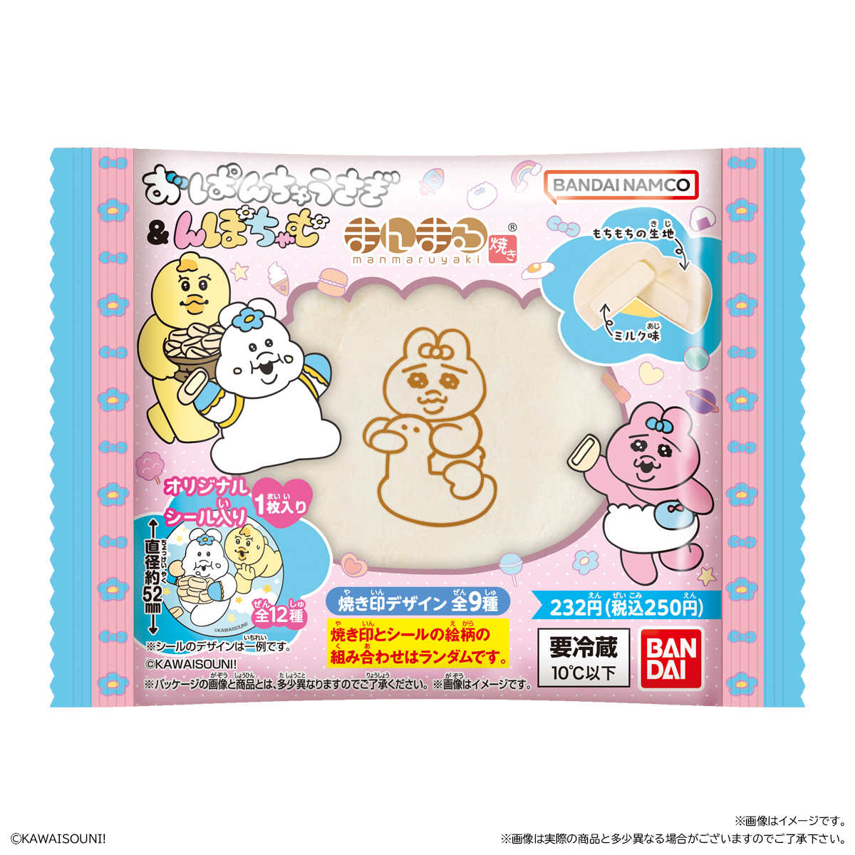 \おぱんちゅうさぎ&んぽちゃむ まんまる焼き 本日発売!/ 今川焼きの表面に「おぱんちゅうさぎ&んぽちゃむ」の焼き印がついたキュートなまんまる焼きが発売✨ 付属のオリジナルシールは全12種🤩 全国のファミリーマート(一部店舗を除く)にて発売! 詳細はこちら👇 bandai.co.jp/candy/products…
