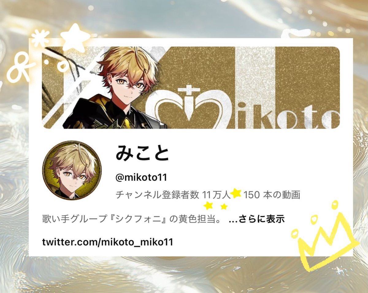 🎼. ݁₊ ⊹ . ݁˖ . ݁.⋅˚₊‧ 👑 ‧₊˚ ⋅. ݁₊ ⊹ . ݁˖ . ݁💛 Youtubeチャンネル登録者数 11万人おめでとうございます🎉 🎼. ݁₊ ⊹ . ݁˖ . ݁.⋅˚₊‧ 👑 ‧₊˚ ⋅. ݁₊ ⊹ . ݁˖ . ݁💛 #みことの民 pic.x.com/oxOE4CaGLM