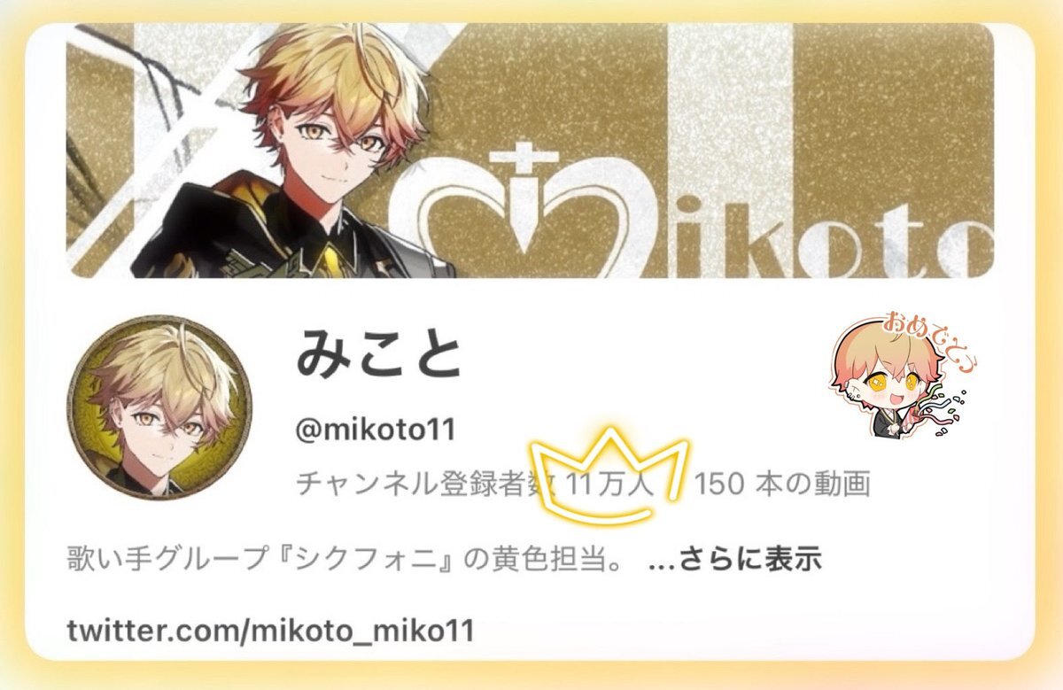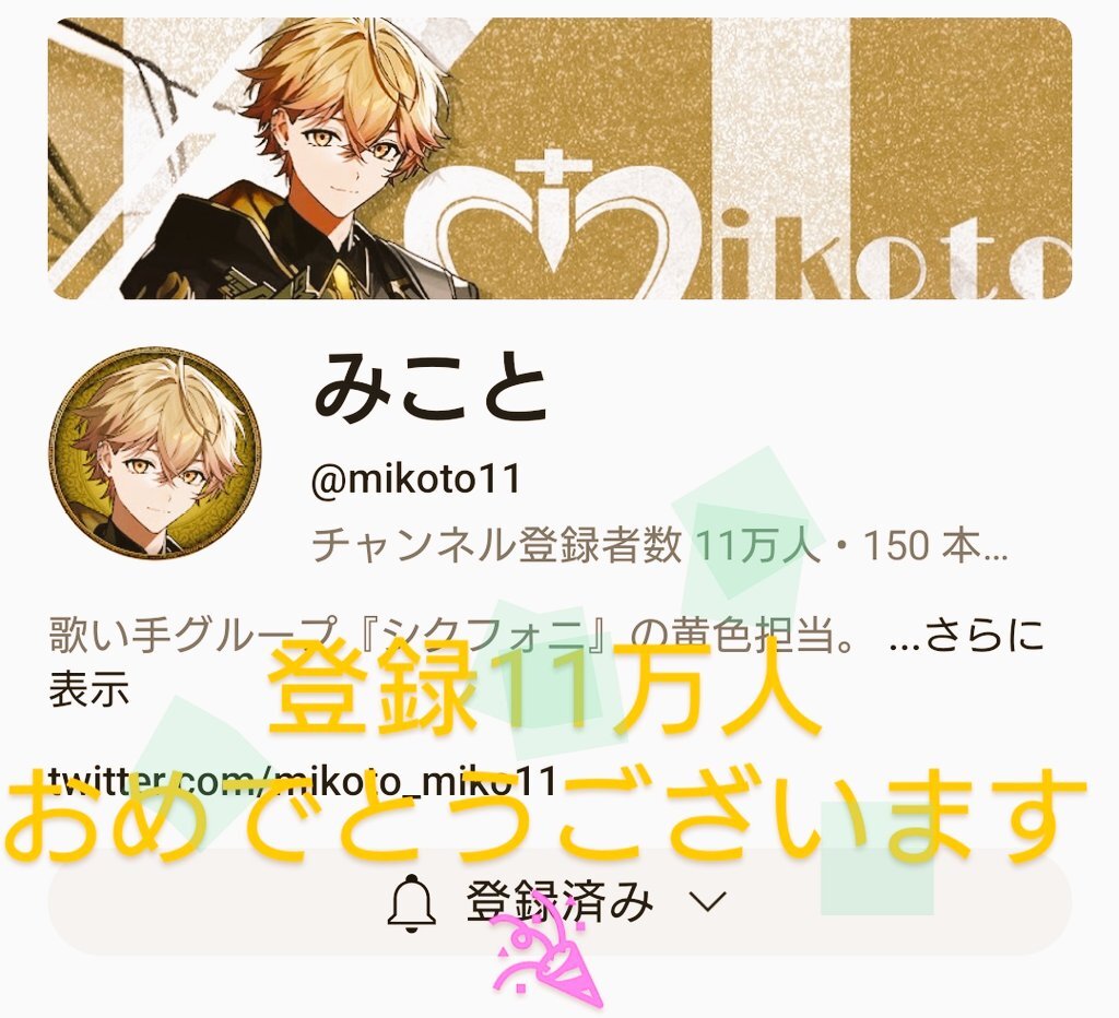 みことくんYouTubeチャンネル登録者11万⤴︎おめでとうございます🎉 #みことの民 pic.x.com/46Hg8Knz9a