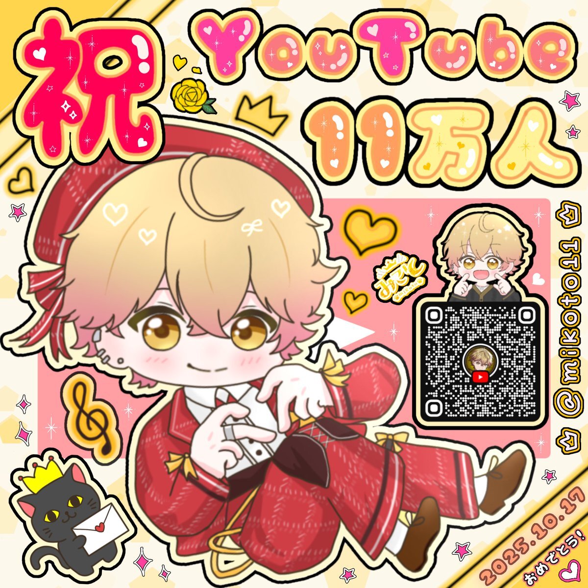𝐘𝐨𝐮𝐓𝐮𝐛𝐞 𝐜𝐡𝐚𝐧𝐧𝐞𝐥 𝟏𝟏𝟎,𝟎𝟎𝟎 🎧ᝰ.ᐟ みことくんおめでとう~!! 💐 いつも頑張れる原動力になってるよ🫶🏻 素敵な歌や動画をたくさんありがとう。 これからもみことくんらしく👑🐾 楽しく活動してくれたら嬉しいです。 ちゃんと見てるからねー!!🥚✨ #みことの民 #みこぬんてぃ絵す pic.x.com/hjwaiFHfWV