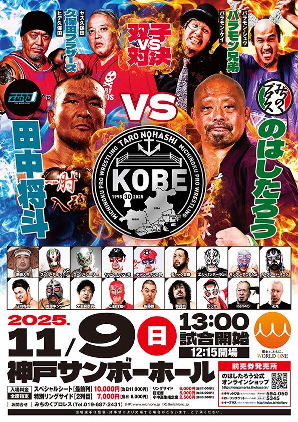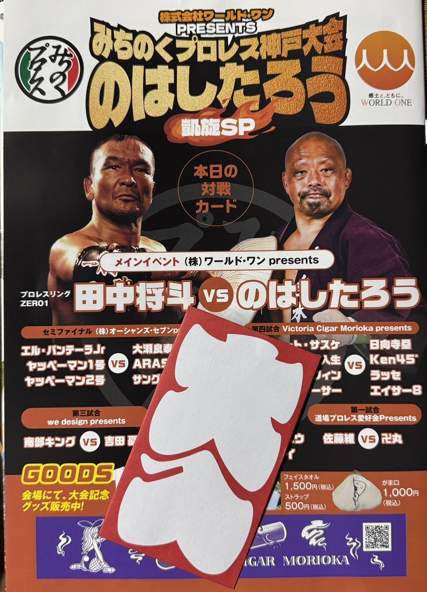 9日(日)は #みちプロ神戸 ⚓️❗️ 前売券、オンラインショップ(oogamania.thebase.in)&@morning_pro は本日(4日)迄。 プレイガイドは5日迄 当日券1000円増、お得な前売券を是非とも☺️ #みちプロ神戸 は紙テープ🆖応援幕🆖よろしくお願いします🙇‍♂️ #みちのくプロレス #神戸市 pic.x.com/iSYxSPRUCQ x.com/kankoutaishi_n…