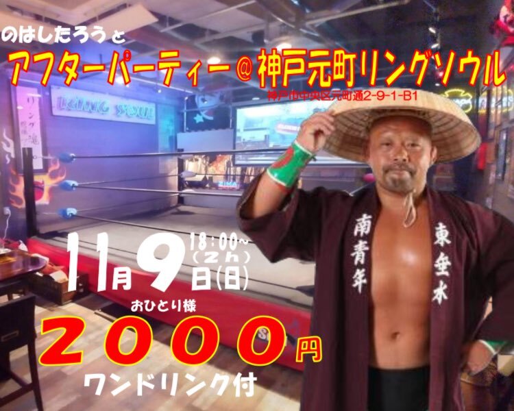⭐︎緊急決定⭐︎ #みちプロ神戸 後は私と乾杯🍻❗️ 【イベント名】 みちプロ神戸アフターパーティー 【日時】 11月9日(日)18時〜(2h) 【場所】 プロレスカフェバー RINGSOUL 〈〒650-0022 兵庫県神戸市中央区元町通2丁目9−1 元町プラザビル B1F〉 【お値段】 2000円 ※ワンドリンク付 pic.x.com/Uvdgoh17dp