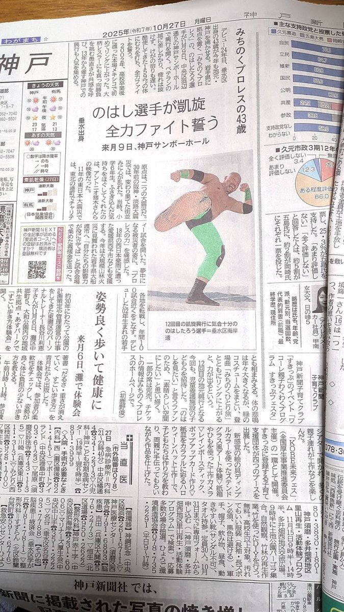 #神戸新聞 様、ご取材頂きありがとうございました😊 前売券、オンラインショップ(oogamania.thebase.in)&@morning_pro は11月4日迄。 プレイガイドは7日 当日券1000円増、お得な前売券を是非とも☺️ #みちプロ神戸 は紙テープ🆖応援幕🆖です、よろしくお願いします🙇‍♂️ #みちのくプロレス x.com/kankoutaishi_n…