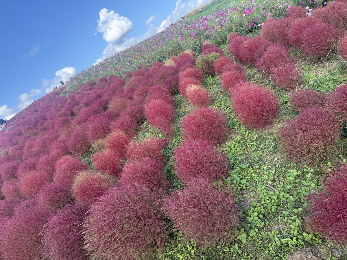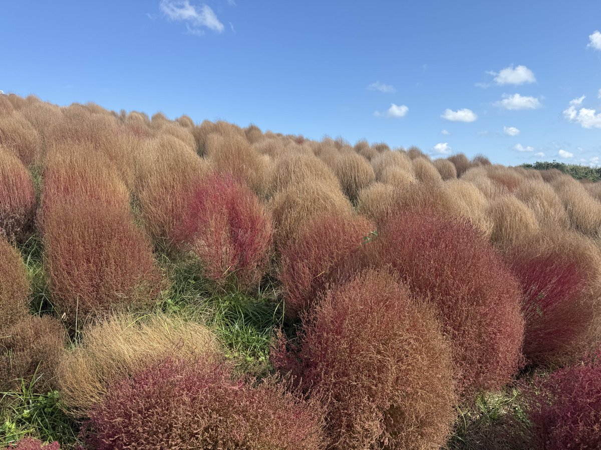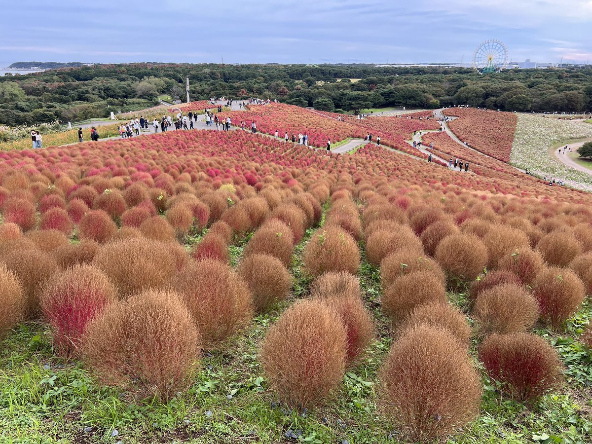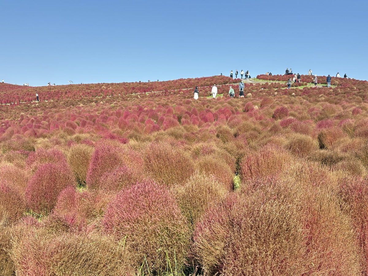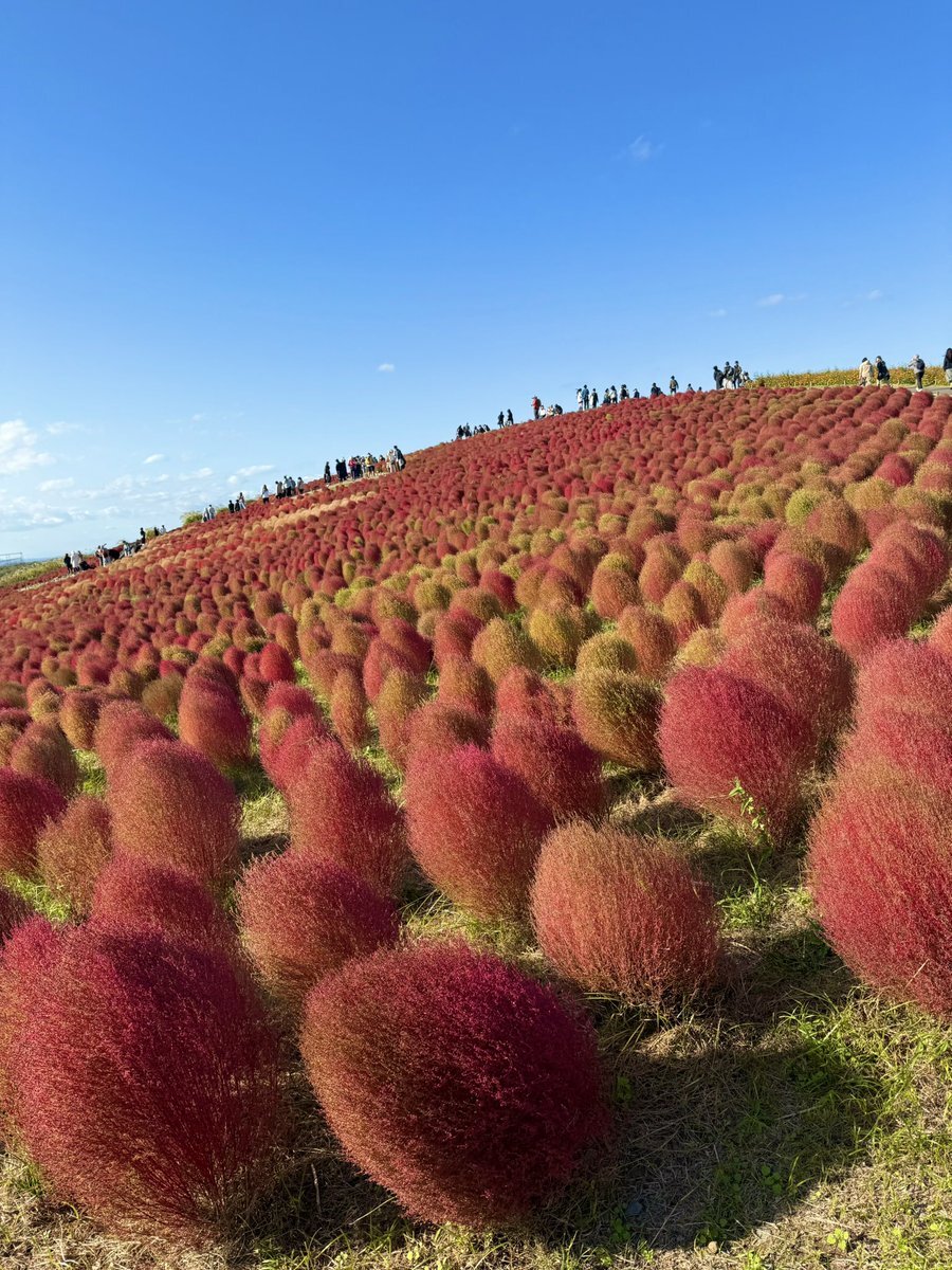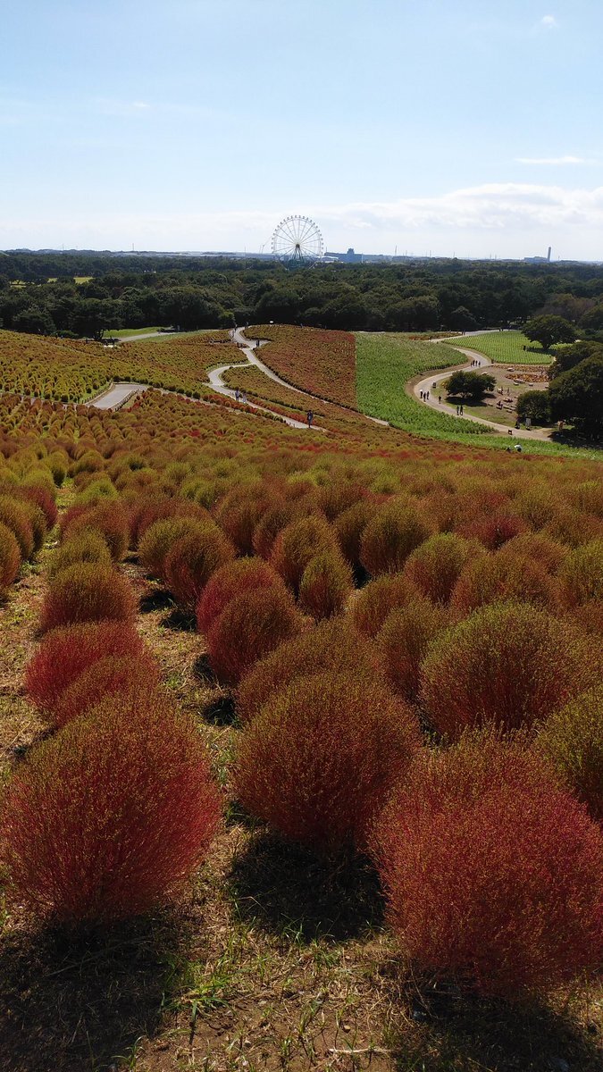 返信先:@HitachiKaihin#ひたち海浜公園 @Hitachikaihin #国営ひたち海浜公園 #hitachiseasidepark #みはらしの丘 #ひたちなか市 #コキア が見られるのは 11月3日(月・祝)まで 休園日の11月4日(火)に 抜き取り作業を行うとの事 ※2025年10月10日撮影