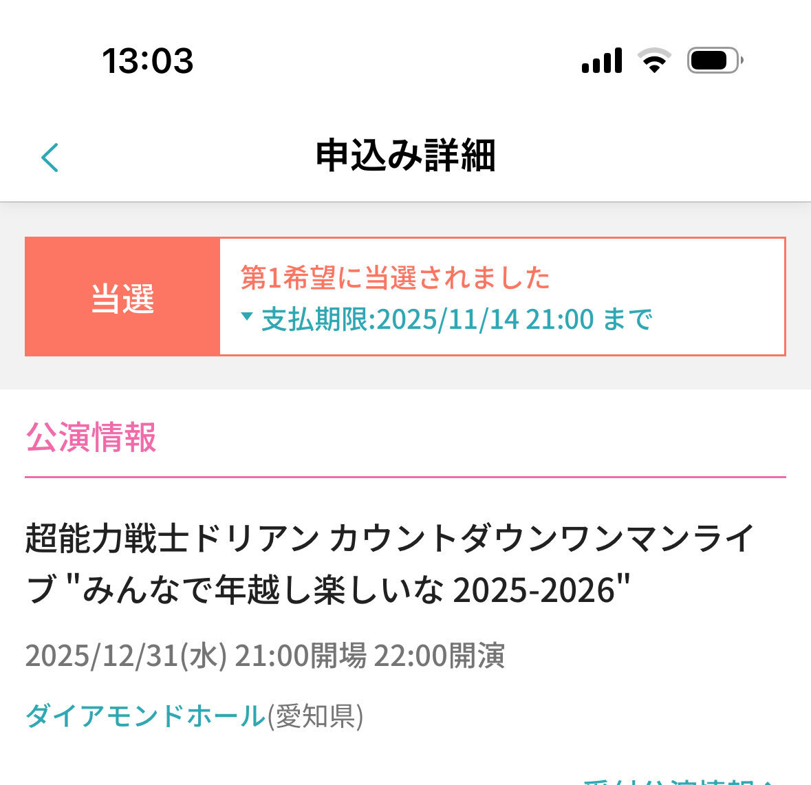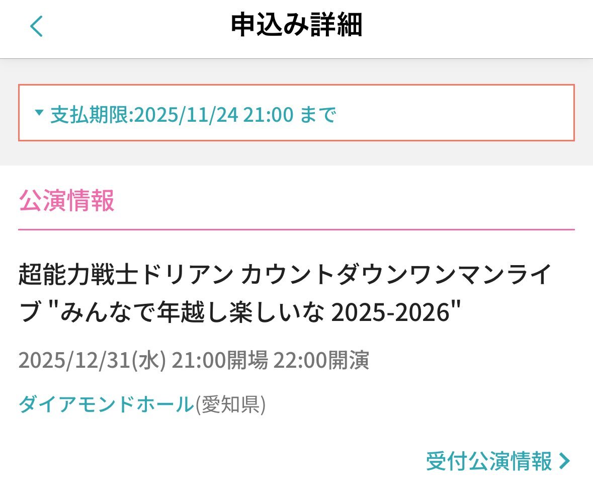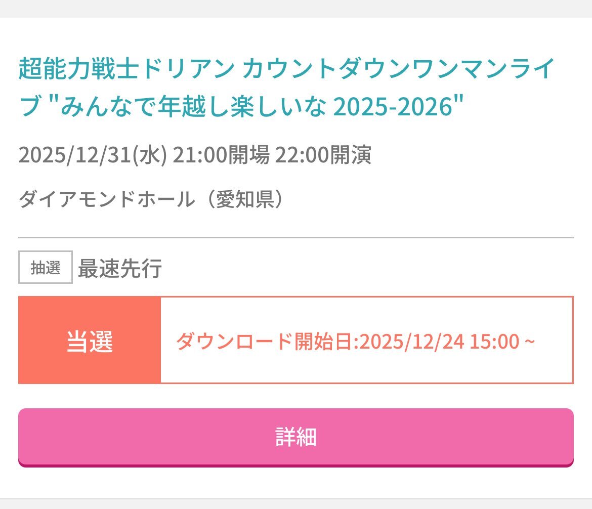 年越しライブ当たりましたー! ありがとうございます🙇‍♀️ #超能力戦士ドリアン #みんなで年越し楽しいな