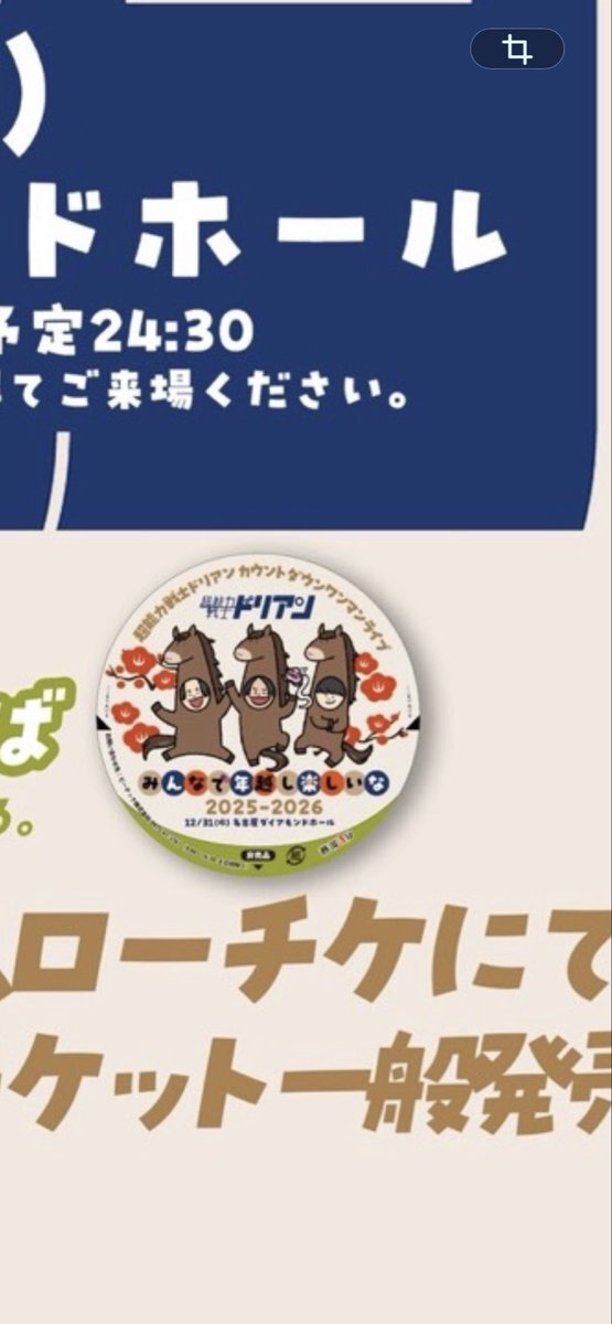 たまたまさっきX見たら、今日から発売って 告知な流れてきたから急いでチケット買った!!ぴあは売り切れたけどイープラで買えました◎ 超最速抽選は外れてたからよかった。 超能力戦士ドリアンの公式さん告知ありがとう😊 #みんなで年越し楽しいな