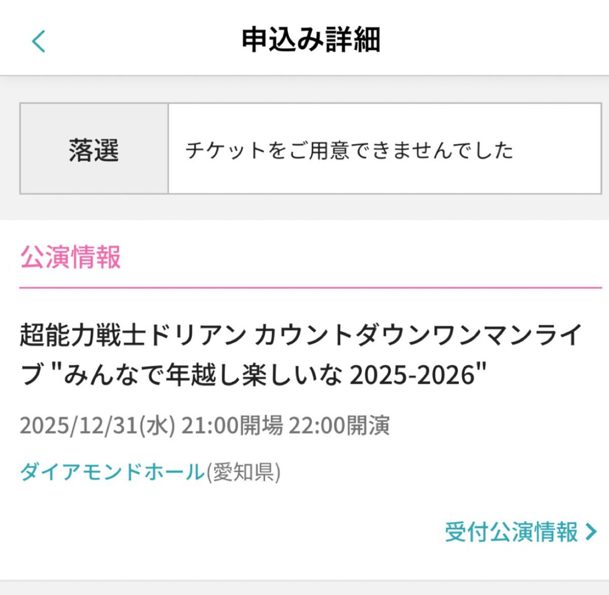 当選した👏 年越しライブ初めてやから楽しみ 前回のライブで彼氏が超能力戦士ドリアン好きになってくれたので一緒に行きます🍑 #みんなで年越し楽しいな
