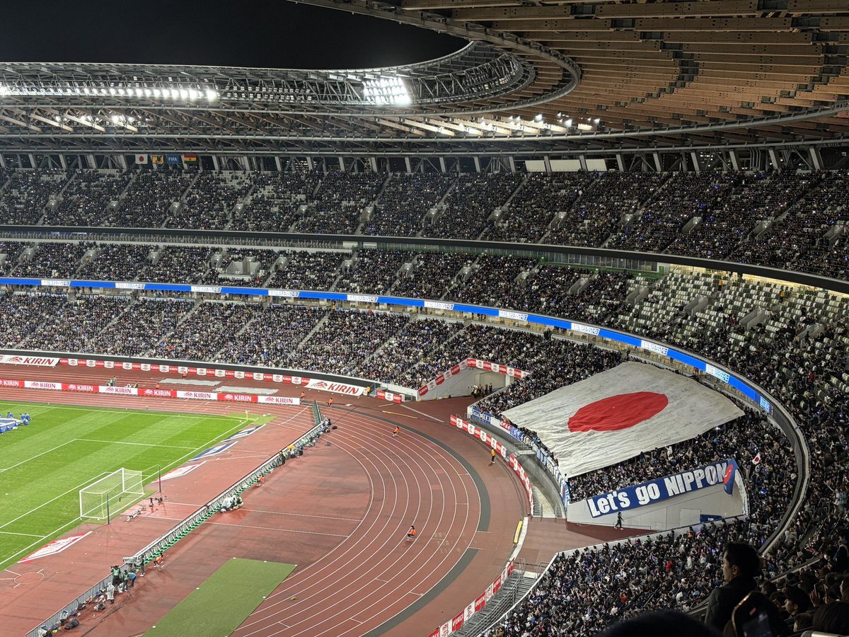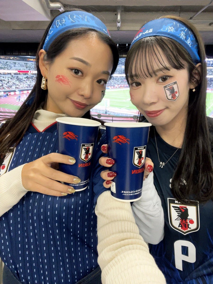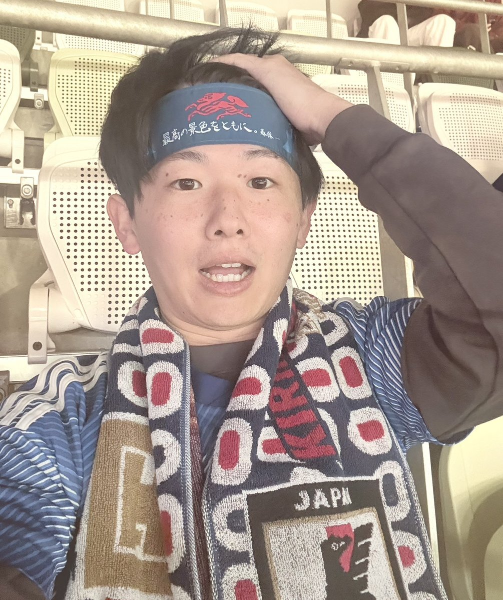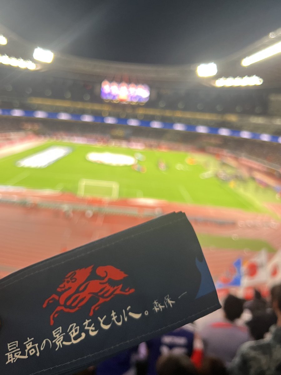 今月3回目の国立👀 森保監督100試合目! 今日は終始こんな顔で試合観てた☺️ あらためて、サッカー超おもしろい!!! 交代のタイミングって大事なんだな〜 #キリン勝利のハチマキ #みんなの心をひとつに pic.x.com/H1a1AleP6n