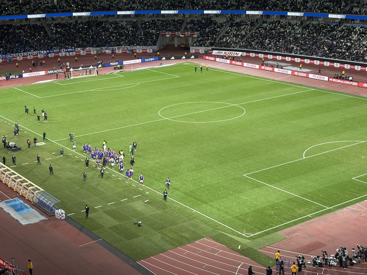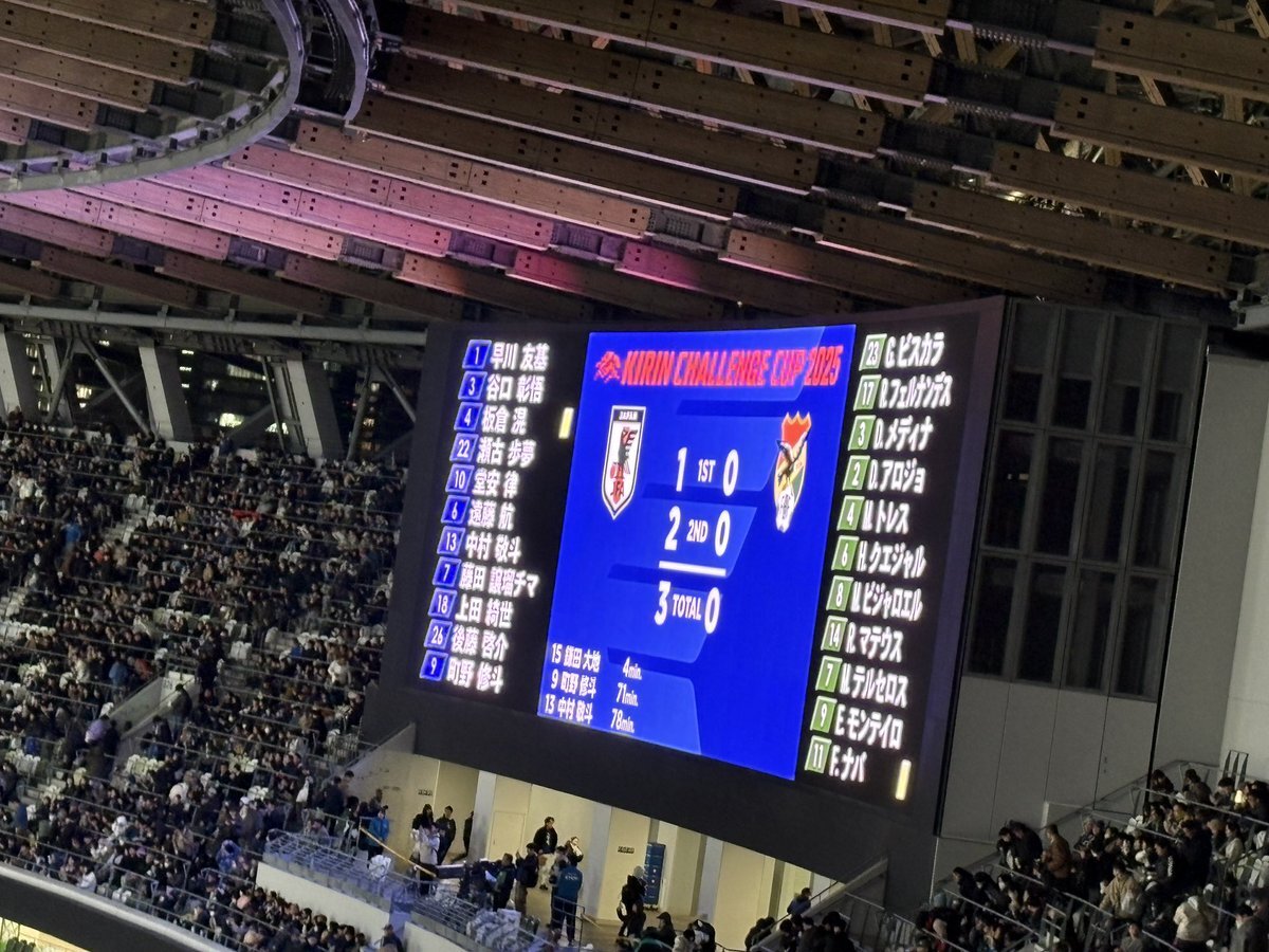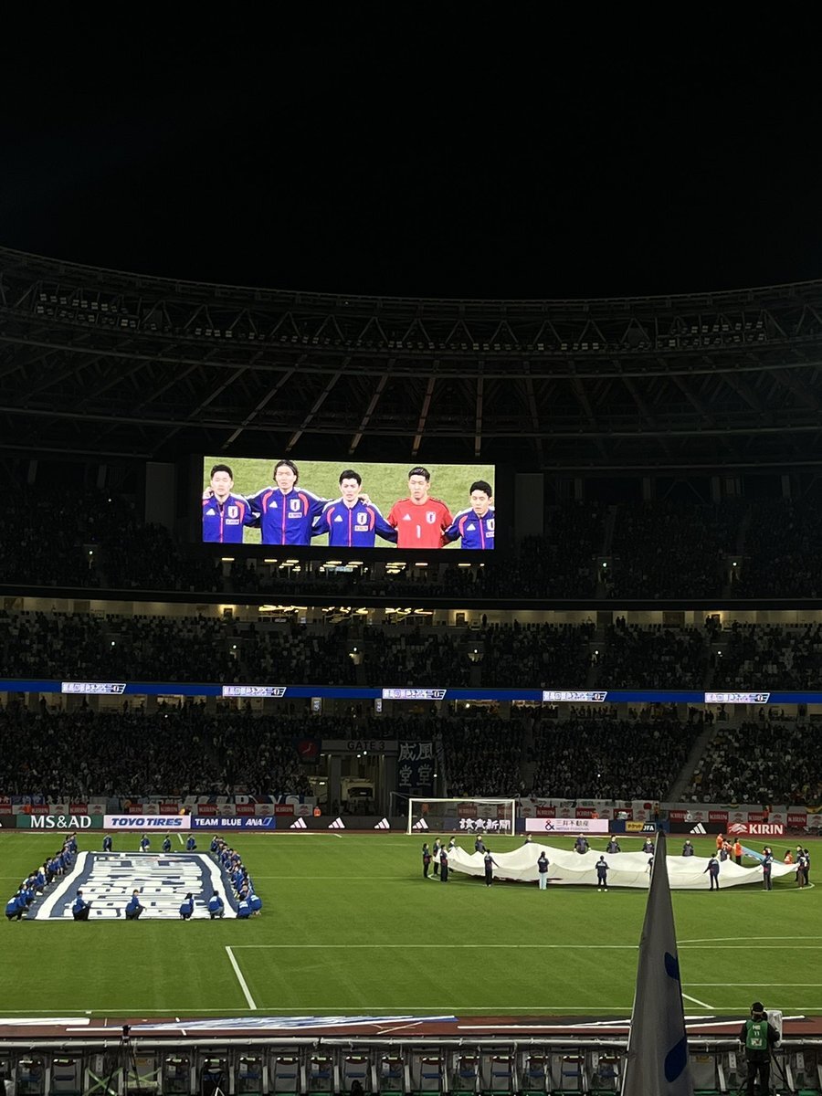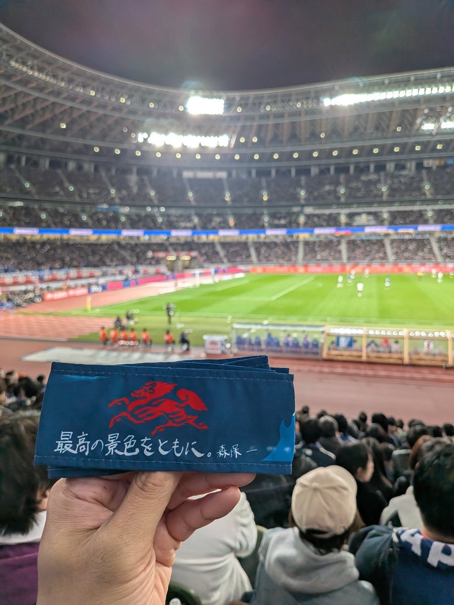 今月3回目の国立👀 森保監督100試合目! 今日は終始こんな顔で試合観てた☺️ あらためて、サッカー超おもしろい!!! 交代のタイミングって大事なんだな〜 #キリン勝利のハチマキ #みんなの心をひとつに pic.x.com/H1a1AleP6n