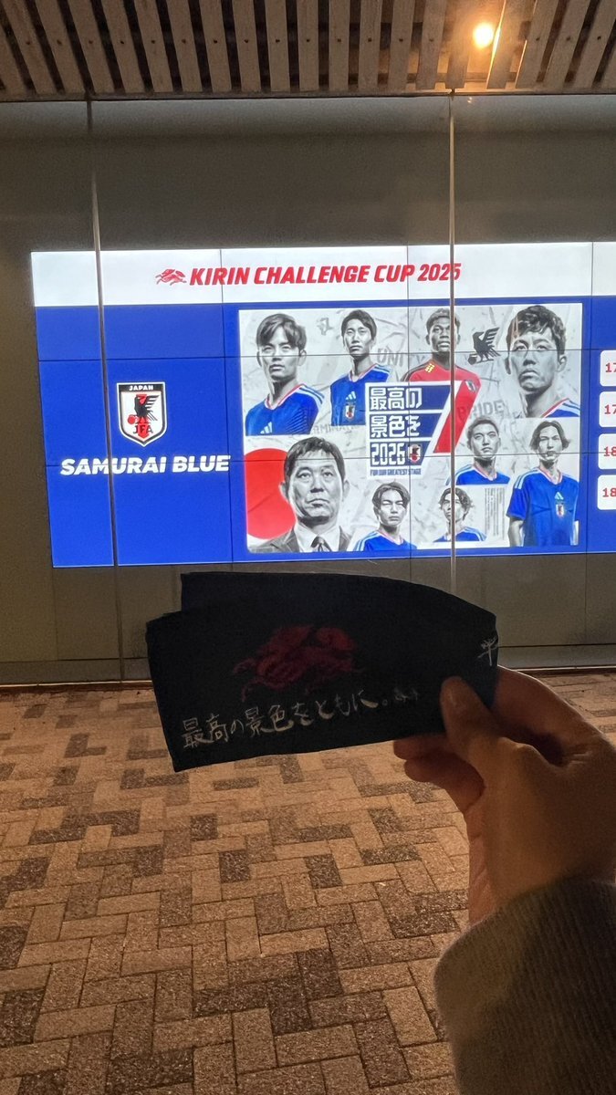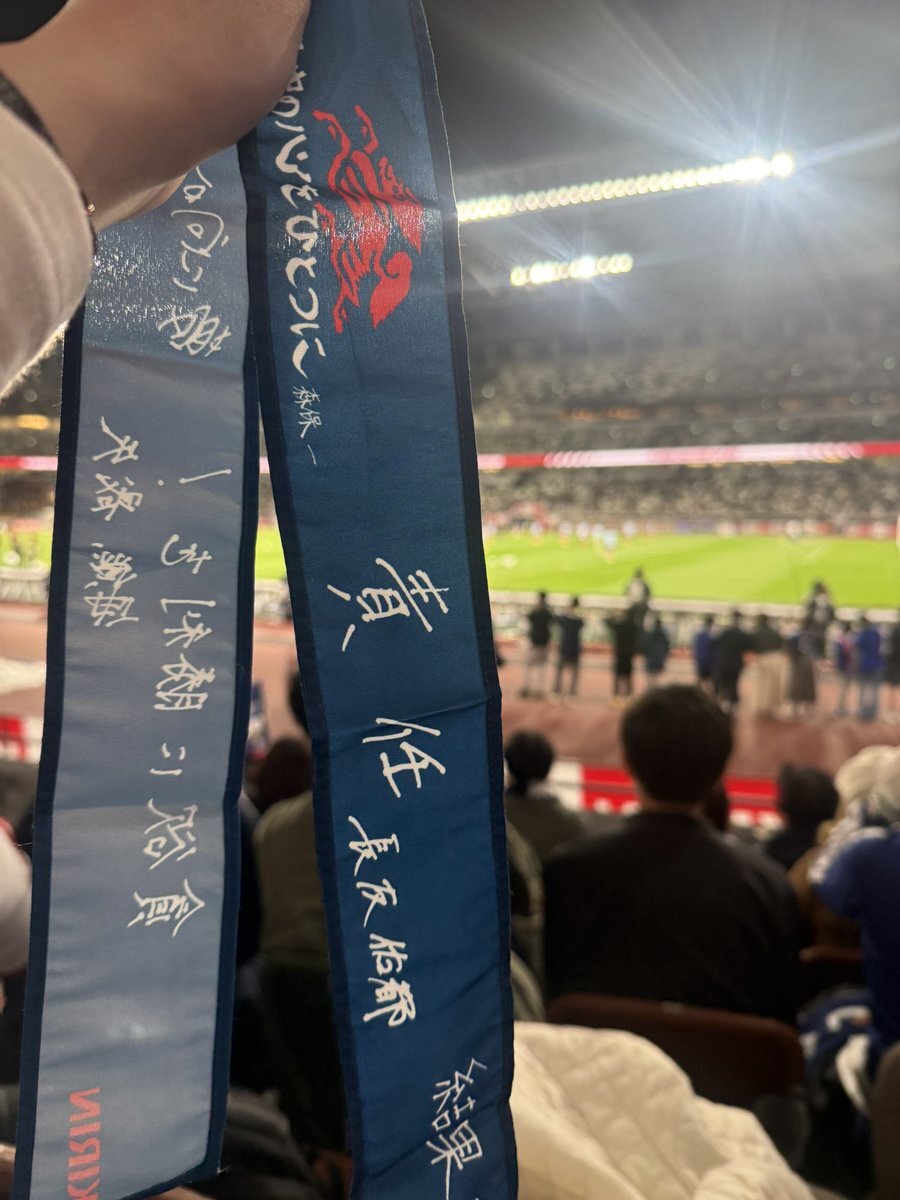 年内最終戦は初のメインスタンド観戦!3ゴールも見られて感無量🥺来年のワールドカップも応援頑張ります!ファイトSAMURAI BLUE🇯🇵 #キリン勝利のハチマキ #みんなの心をひとつに pic.x.com/91rGUm6mZQ