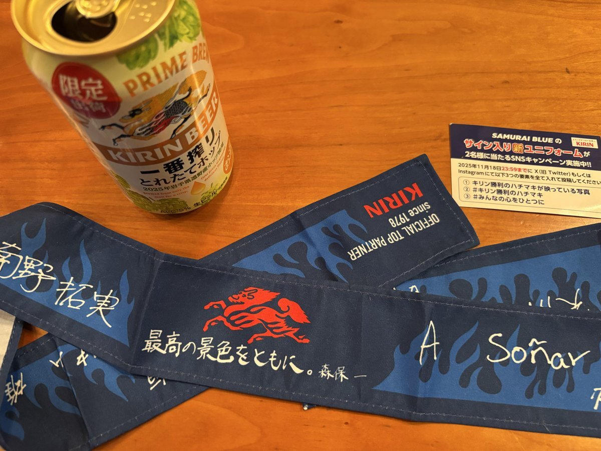 / 勝利のハチマキをお持ちの皆さま! \ SAMURAI BLUEのサイン入り🆕ユニフォームが当たるキャンペーンは本日までです🎁✨ 詳しくは画像をチェックしてください! ☑11/18(火)23:59迄 #キリン勝利のハチマキ #みんなの心をひとつに キリンは #サッカー日本代表 を応援します