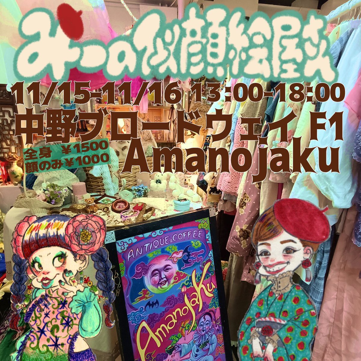 #みーの似顔絵屋さん🎨 11/15-11/16 13:00〜18:00 中野ブロードウェイ地下一階 今年再びめでたく店頭オープンした アンティークファンシー雑貨ショップ @AmanojaKu620 さん👼 でやらせていただきます!! 3時間はいたくなるくらい 脳と時間が可愛いで溶けるお店ですのでぜひぜひ来てください✨️