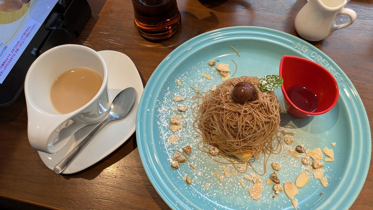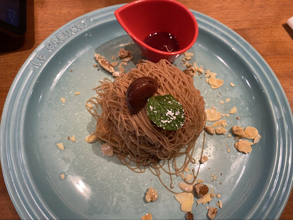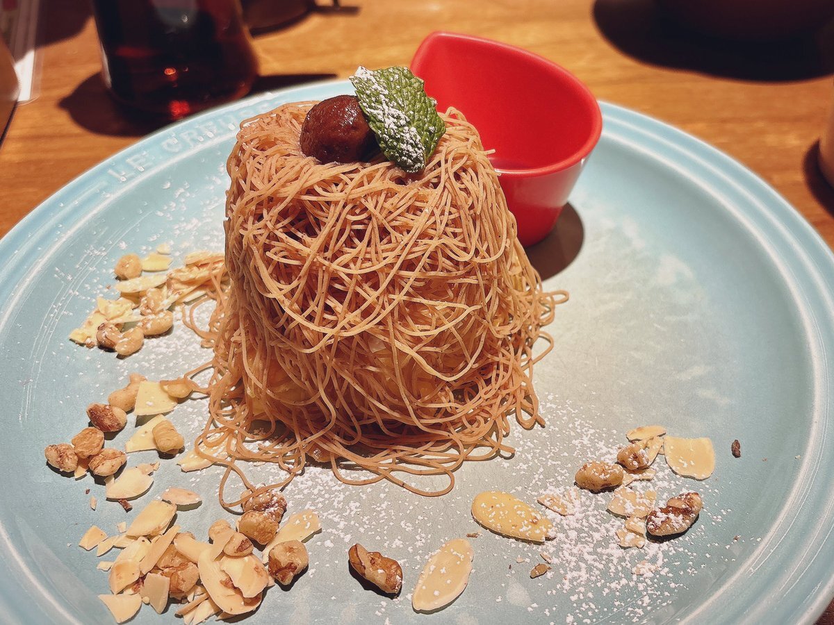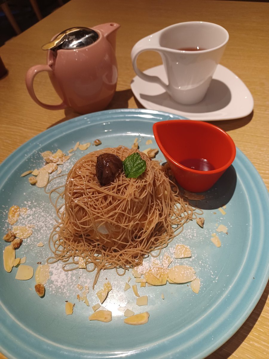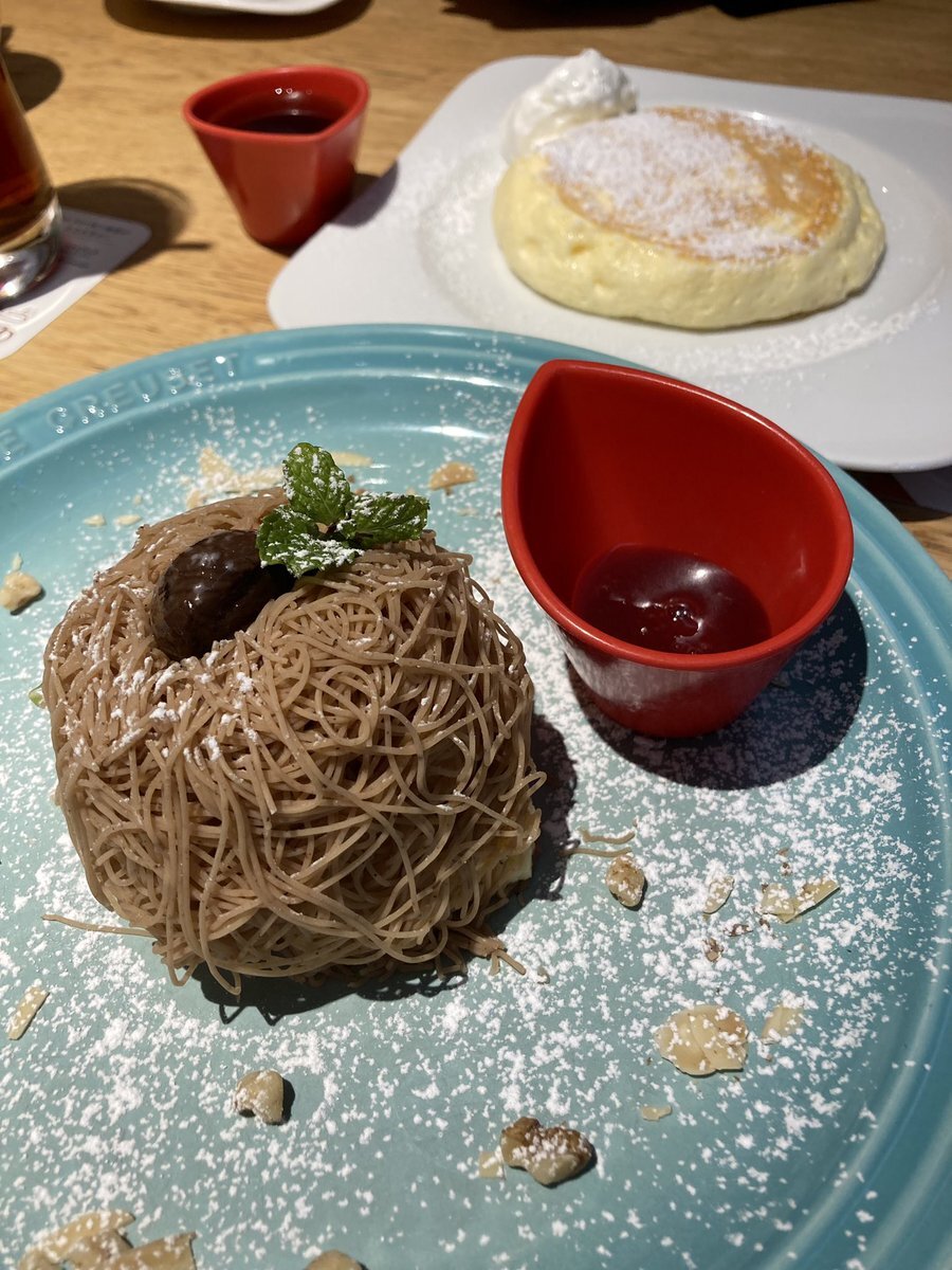 🚃で移動して私の行きたいカフェにて念願の絞りたてモンブランパンケーキ🥞を食べたよ✨ 中にバニラアイス入ってて最高過ぎた🙌 まぐろアボカドGOHANも美味しかった😋 私は普段メニューは直ぐ決める人なのにどれも美味しそうで二人で中々決まらなくて大変でした💦また行きたいな〜♪ #むさしの森珈琲 pic.x.com/VfecRRv352