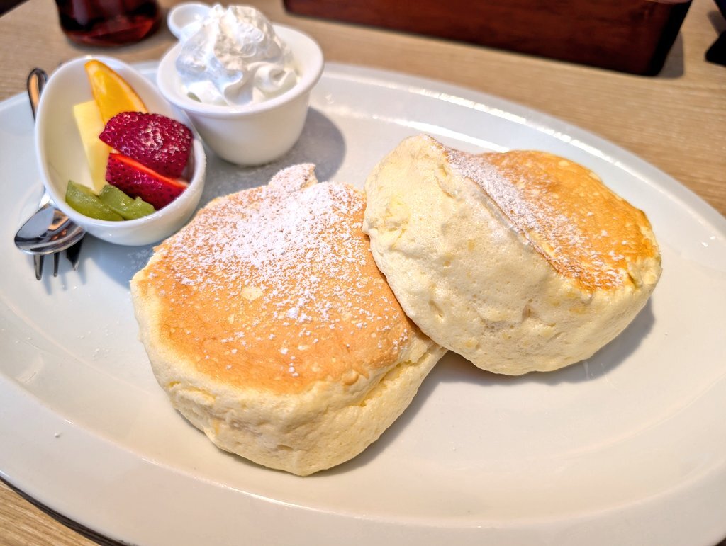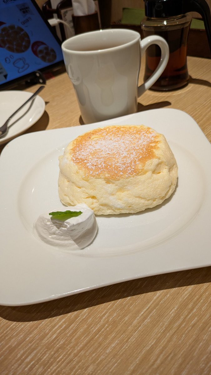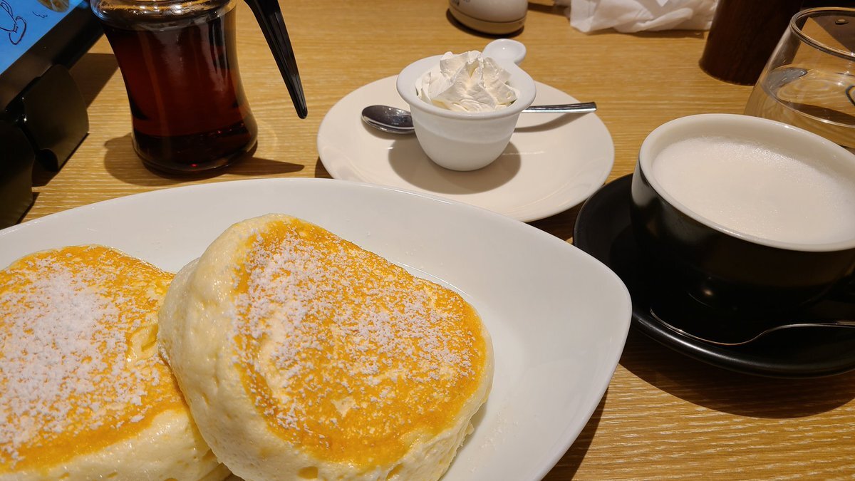 🍃💛昨日のごほうびは、むさしの森珈琲のとろけるパンケーキでしたっ♪🥞🥄:*(〃∇〃人)*:✨ ふわふわすぎて天使の食べ物かと思った…♡笑 幸せチャージ完了です🍰💕 #むさしの森珈琲 pic.x.com/ZwPKQ4WLJy