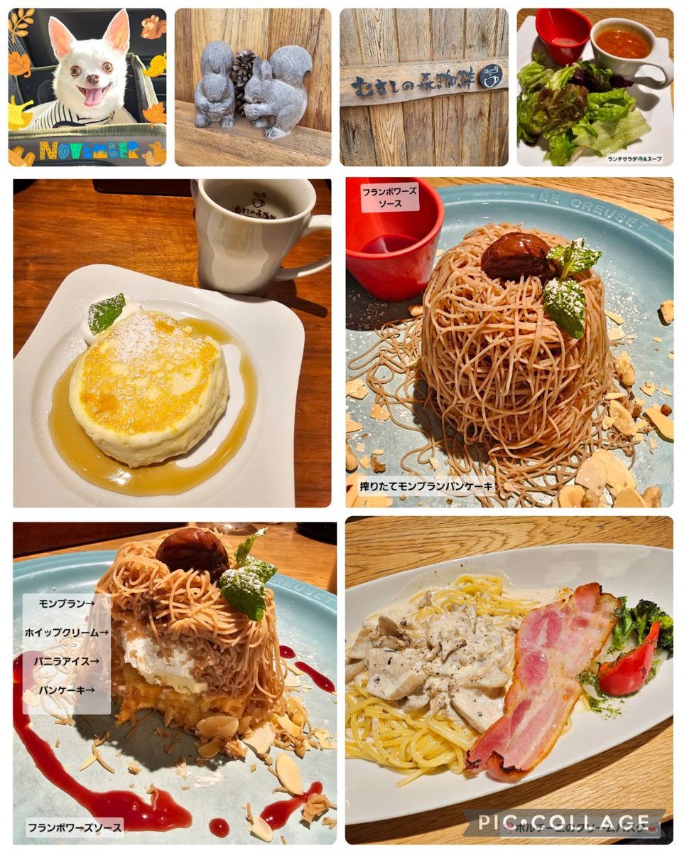 きょうのデザート♡&紅葉🍁 #むさしの森珈琲 にて ビーフシチューと海老の ダブルドリア&珈琲☕️ デザートに 絞りたてモンブラン冷やしパンケーキ🥞を いただきました💕 紅葉🍁は家の近所です♪ pic.x.com/J446I5dhu5