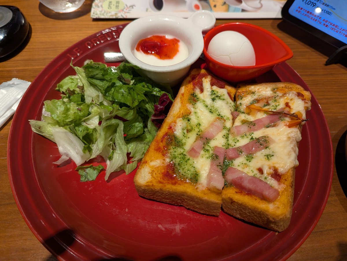 ちょっと来ない間にメニュー一新😱 カヤトーストはグランドにあるけど、たまごがつかなくなってたorz💦えー😭😭 もう、アボカドトースト、スープモーニングとか好きなメニューがなくなっていく😭😭😭😭 #むさしの森珈琲 #ベーコンエッグのピッツアスタイルガレット #好きなメニュー消滅 pic.x.com/GbXno1vL08