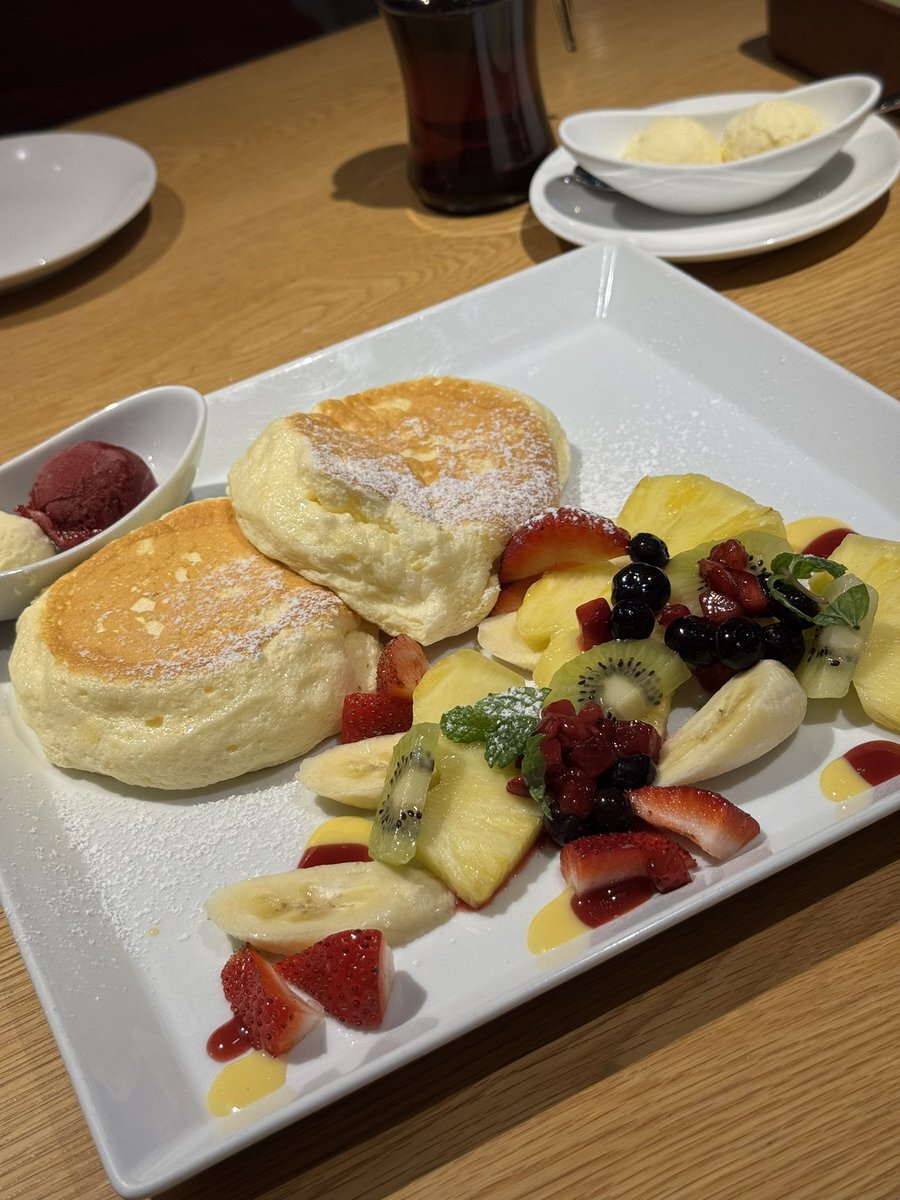 こんばんは😊 #むさしの森珈琲 大好きふっわふわ🥞 #フルーツスペシャル (蜂蜜入りメイプルシロップ添え) 久しぶりに 幸せな時間💞 半分も食べれずだけど 行けることに感謝✨️ 今は 見てるだけて幸せ みんなが美味しそうなお顔でニコニコ😊で 食べる姿が大好き 🥞🍓🥝🍍🫐🍨🍯 おやすみ〜🌙*゚ pic.x.com/WNpW9h2fzz