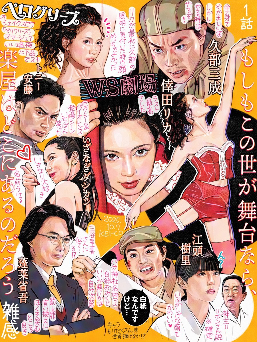 #もしがく 1話雑感。昭和の空気がなつかし楽しい八分坂WS劇場。キャラがいっぱい密度みちみちのスタート、面白かった!久部とリカのラストシーンはもちろん、修正したネタのセリフを採用してもらって微笑む蓬莱省吾も好きでした。毎週楽しみです…! #もしもこの世が舞台なら楽屋はどこにあるのだろう pic.x.com/LW5OO5904N