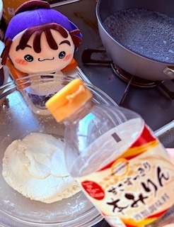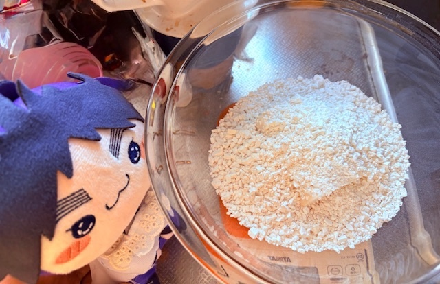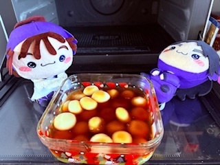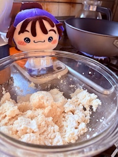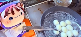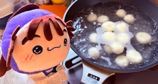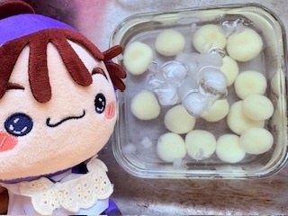 くくち「お豆腐……こんな姿になって……」 おはま「茹であがったら氷水でで冷やします。」 おはま「豆腐白玉の出来上がり!」 くくち「こんな姿になって……」 #rkrnぬい撮り部 #もちぴこのいる暮らし pic.x.com/I3ogJGL3jf