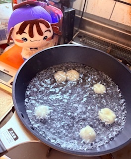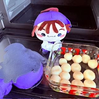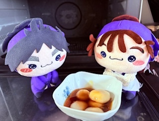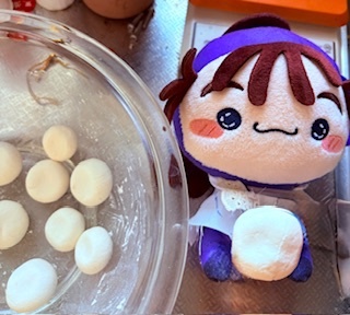 おはま「でっかいのは俺の!」 「沸騰したお湯に白玉を入れて茹でます。浮き上がってきてからちょっと待ってからあげるからね。」 #rkrnぬい撮り部 #もちぴこのいる暮らし pic.x.com/wYIg3HzQX2